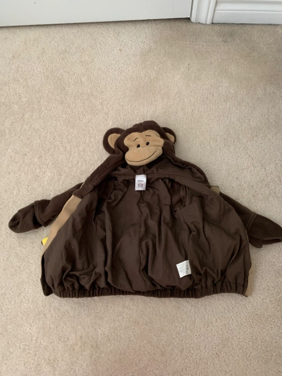 130Super cute monkey costume from Old Navy! Size is 6-12 months. It's in great condition and ready for a new little monkey to wear it