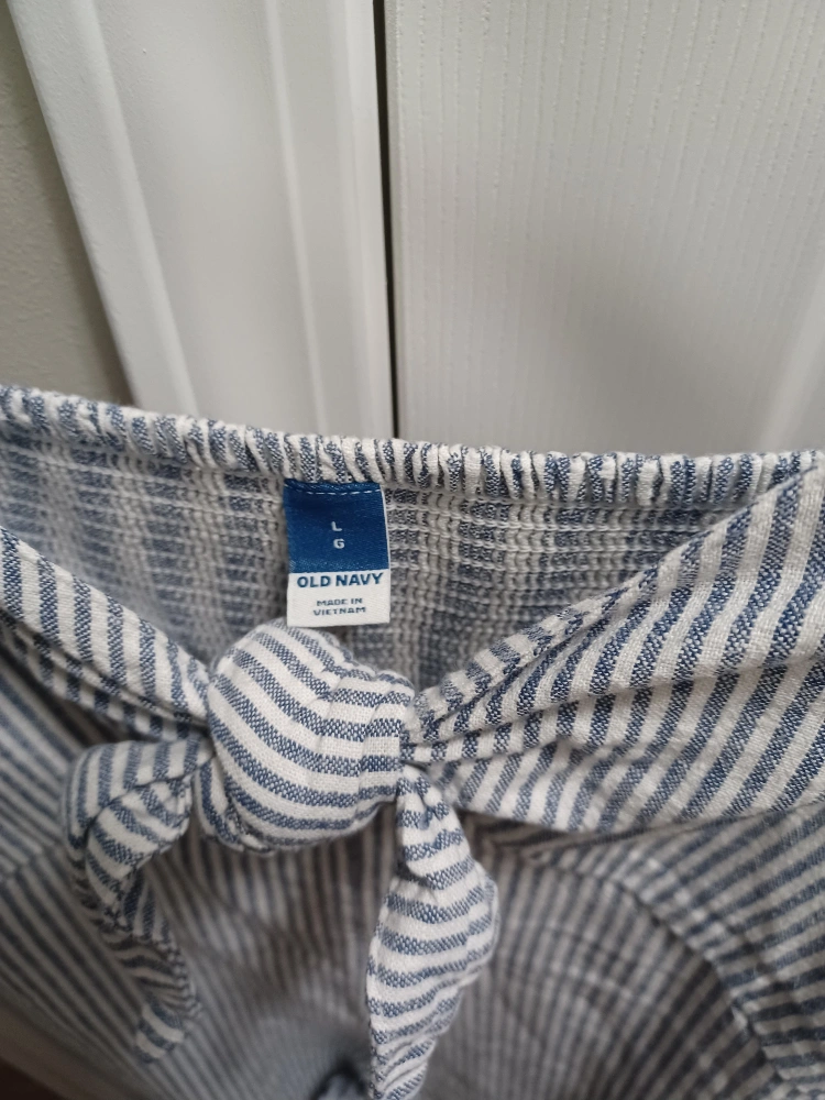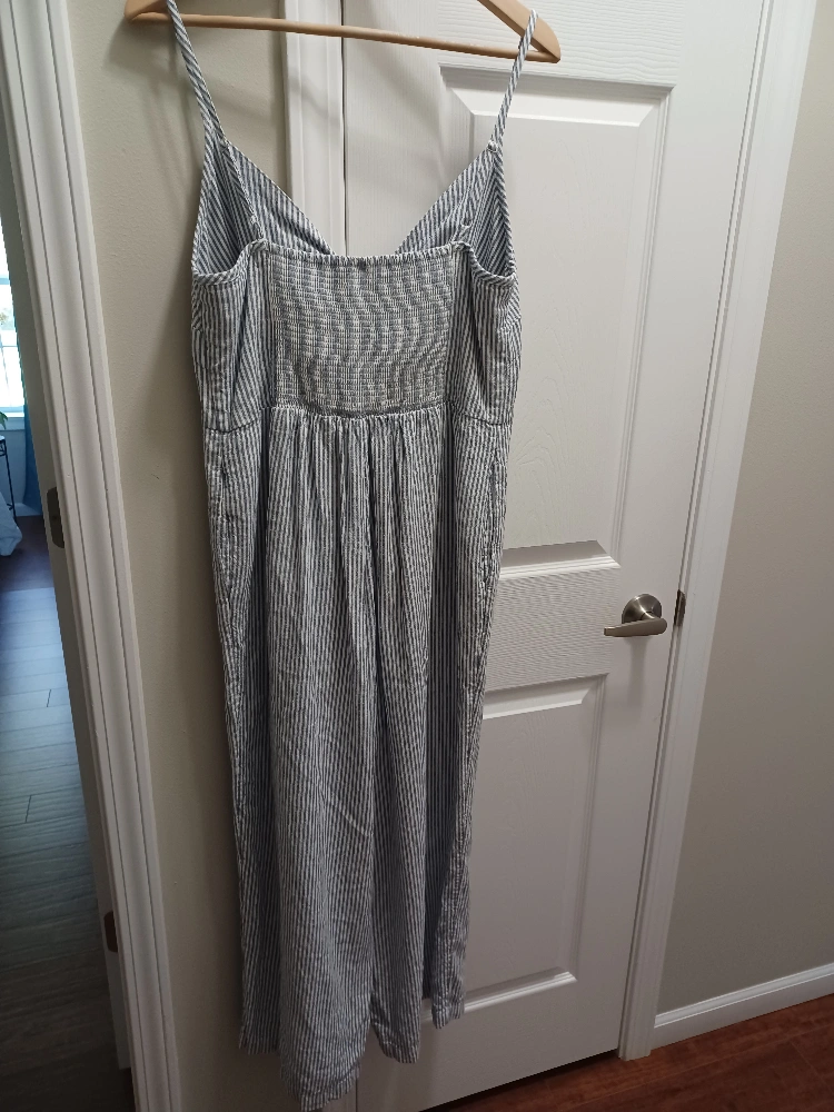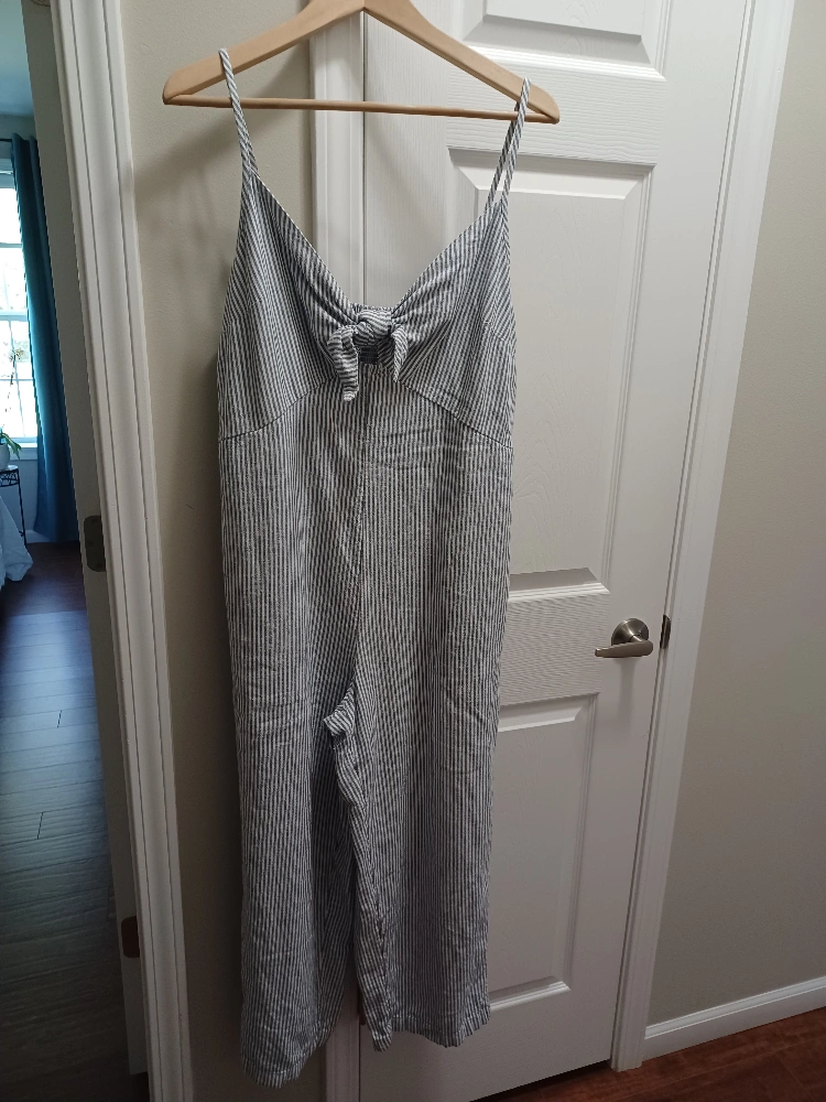 Selling a cute Old Navy jumpsuit in a striped pattern! It's a size L and in great condition. Perfect for a casual day out or lounging around the house