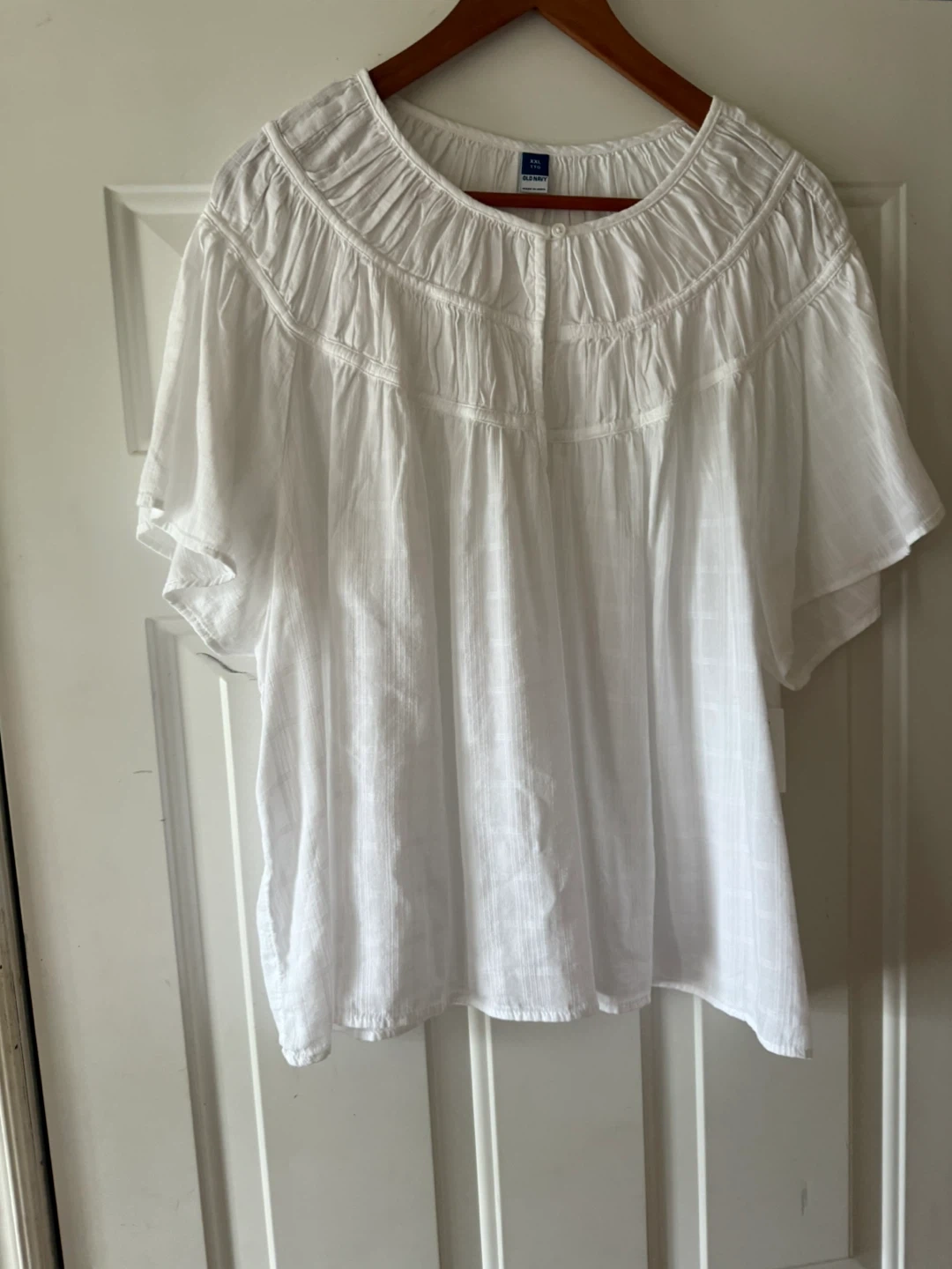 15Selling a lovely white blouse from Old Navy! It's in great condition (never worn) and perfect for a casual or dressy look. The size is XXL.