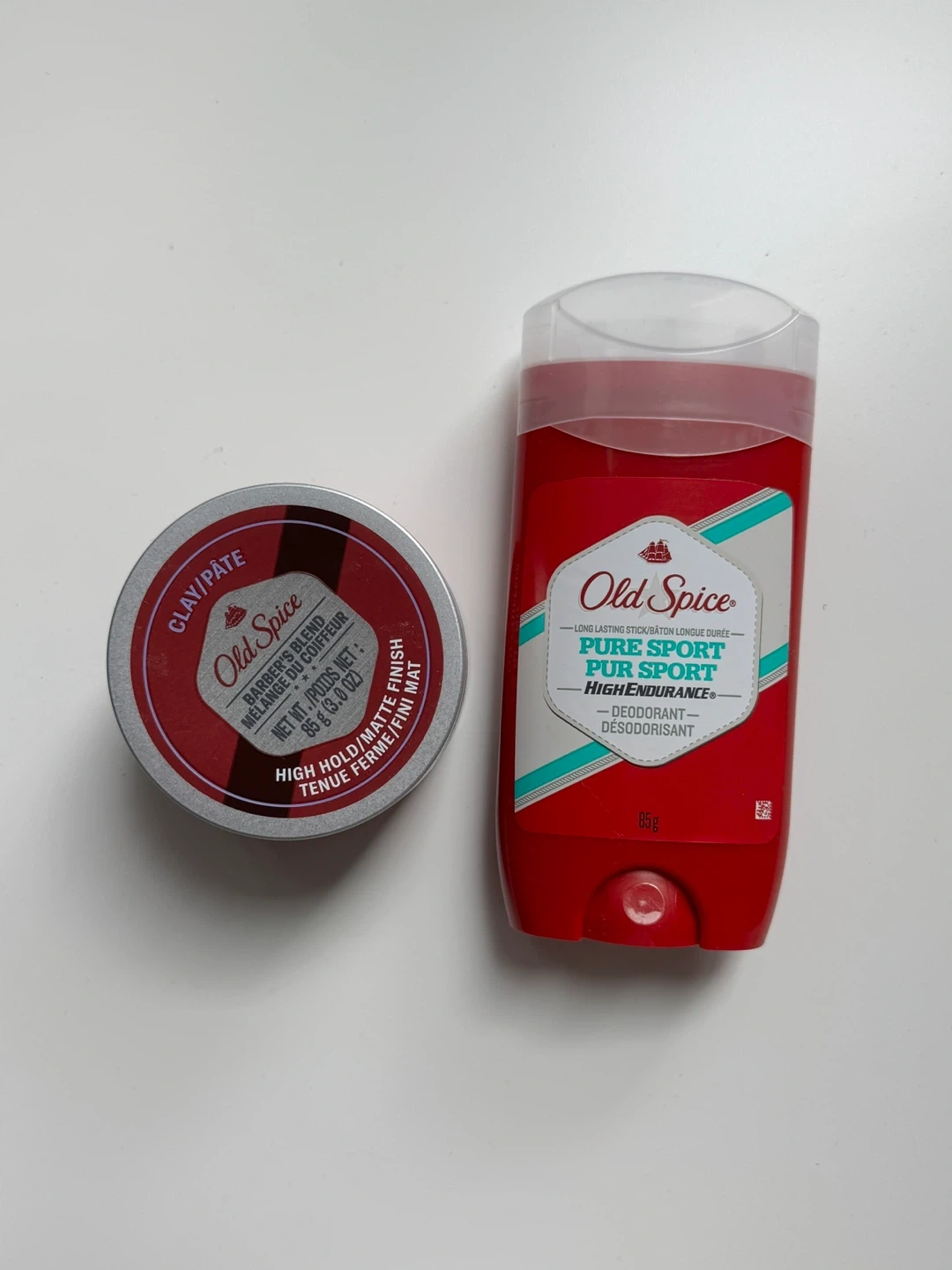 Selling an Old Spice Pure Sport High Endurance deodorant stick (never used!) and a Barber's Blend Clay/Paste for hair (used once!)