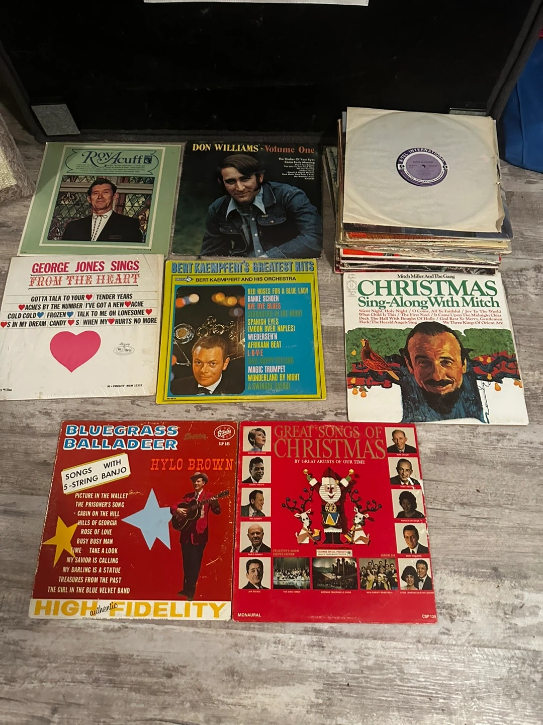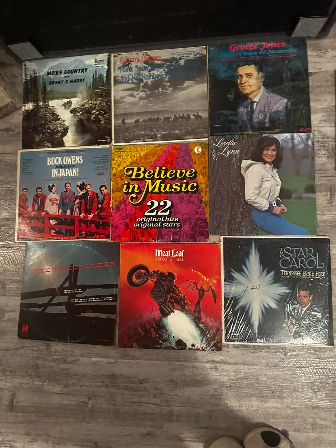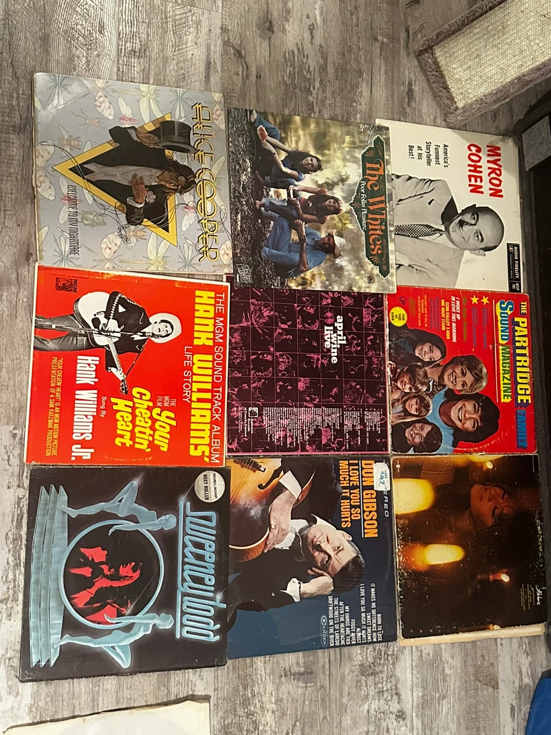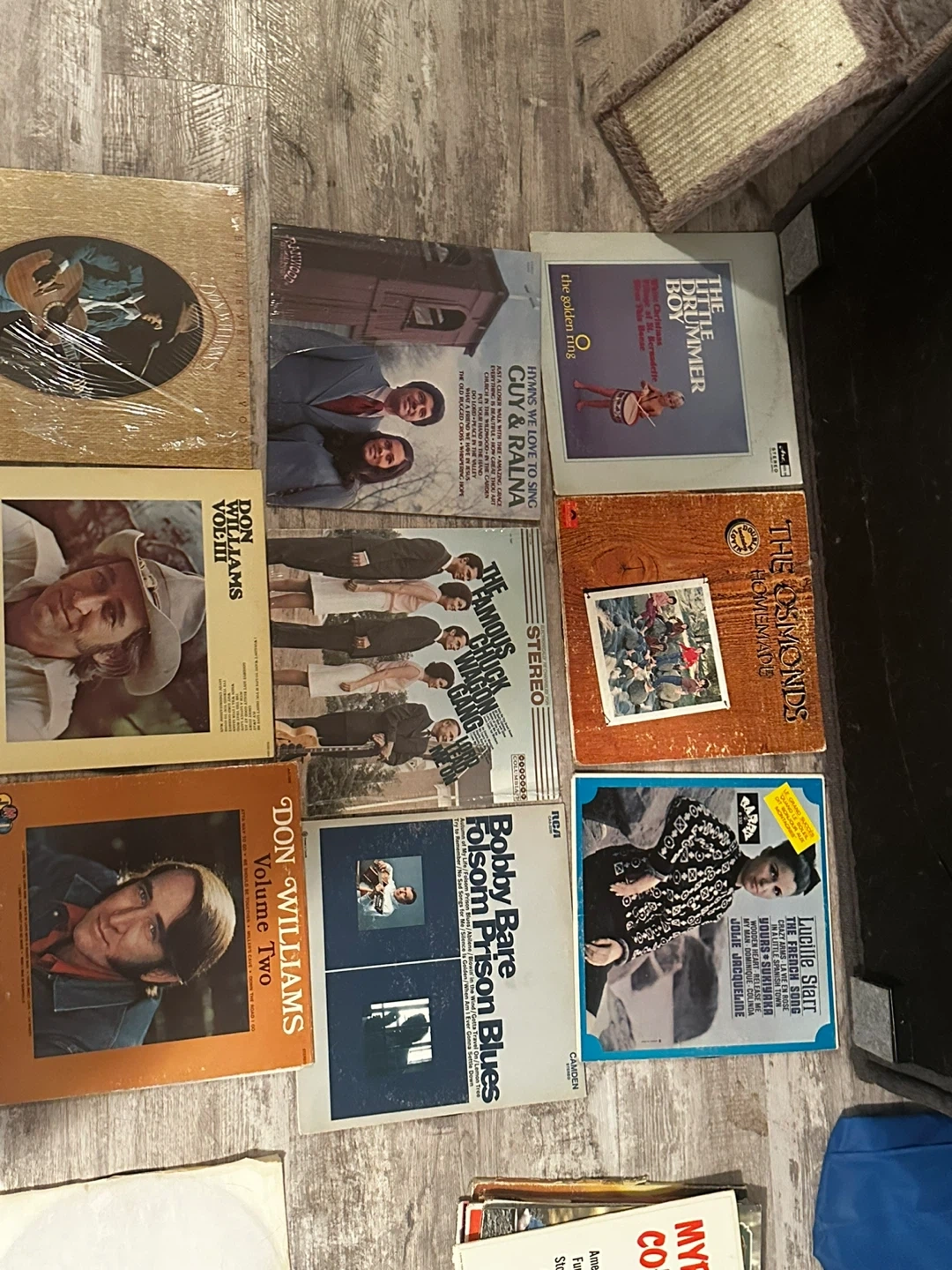 Many random records! I’ve went through them and they’re all there. They’re just taking up space, i have even more in storage. looking to get $3 per record OBO. (if wanting to trade, i’m a huge elvis fan that’s the only person on my record wall🤣🤣)