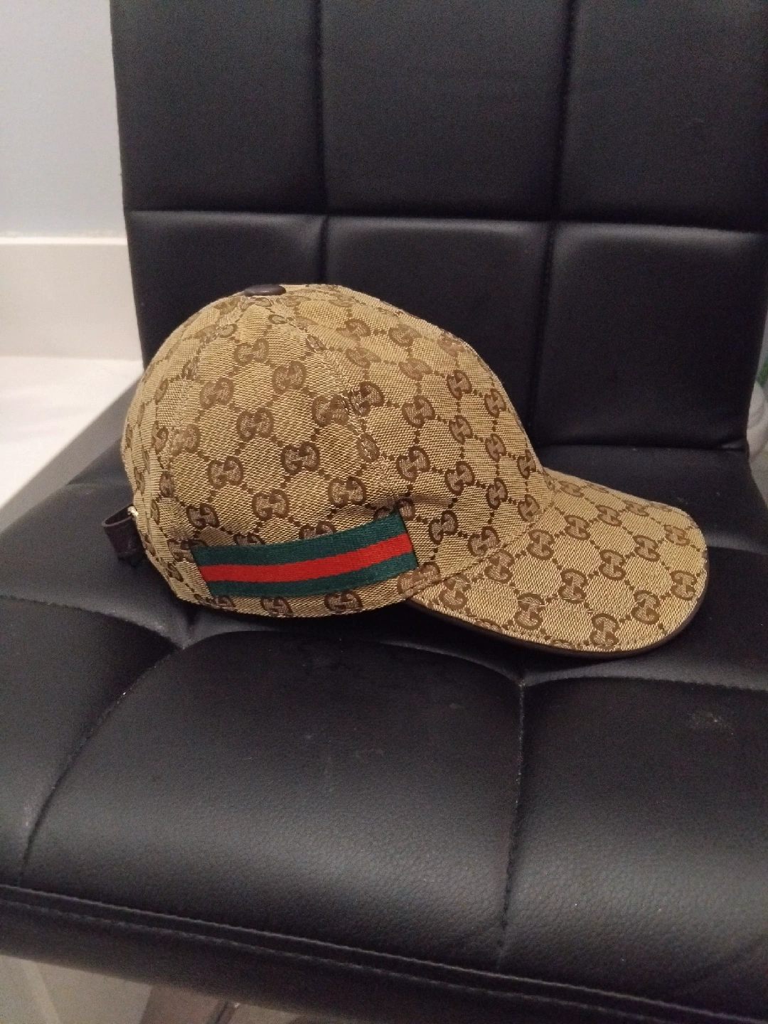 Selling a Gucci baseball hat with the iconic GG canvas pattern. It's in great condition and features the classic green and red stripe detail. A stylish addition to any outfit! pick up only Woodbridge