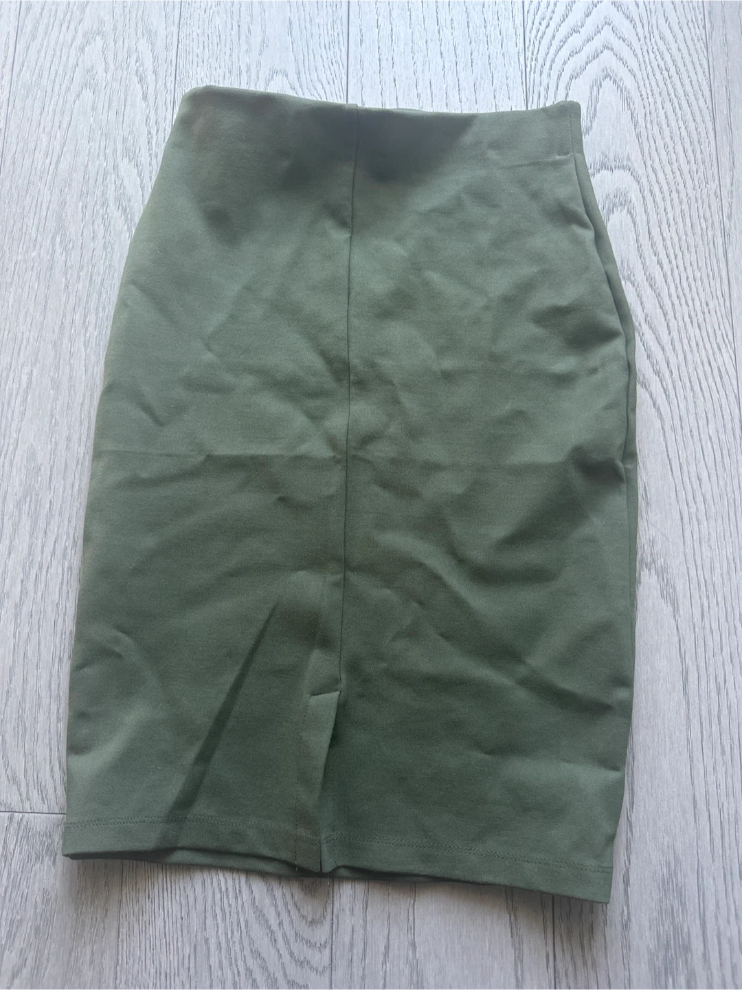Selling a skirt in olive green! It's a size extra-small and in great condition. Perfect for everyday wear or dressing up for a night out