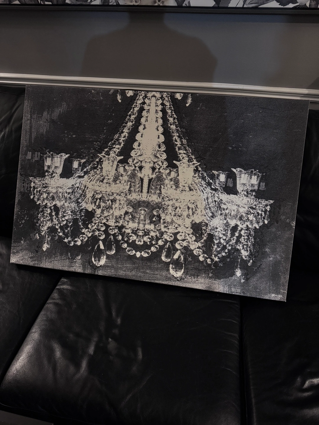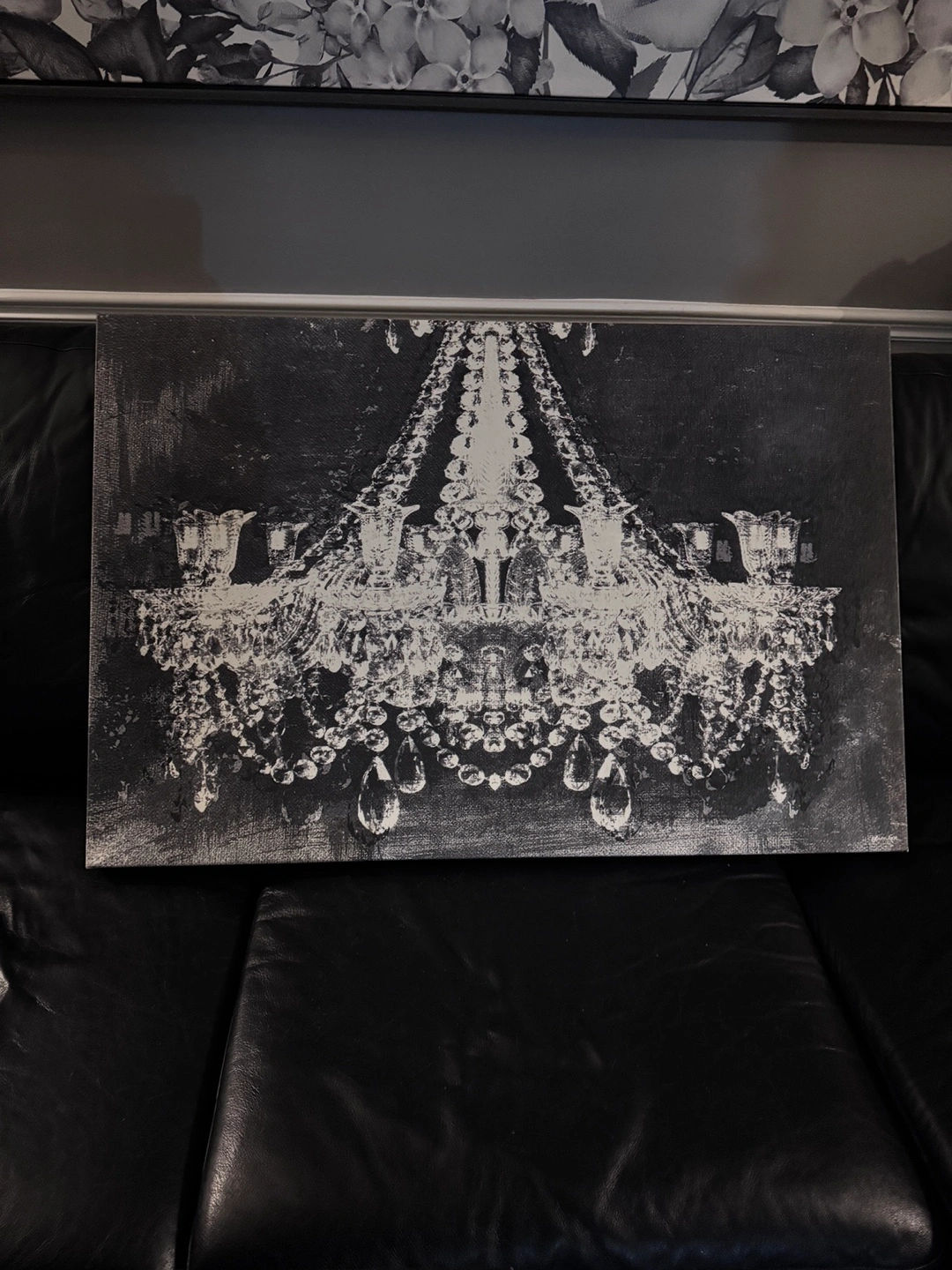 27Stunning black and white canvas print. Features a detailed image of a crystal chandelier. Ready to hang. Adds elegance to any room. In excellent 10/10 condition, no damage. Large size - 24” x 36” with wire hanger on reverse. Paid $250+, only selling because changing decor. Pickup only on Danish Crescent in Etobicoke. First come first served, no holds. Cross posted.