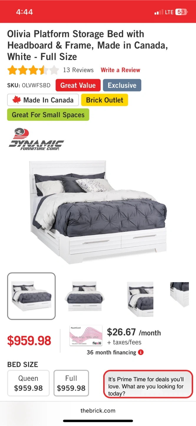 Selling an Olivia Platform Storage Bed with Headboard & Frame in white. This is a full-size bed made in Canada. It's great for small spaces and offers a lot of value. Originally bought for $959.98.