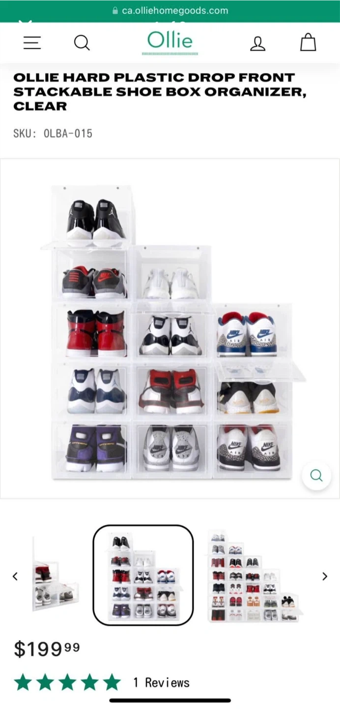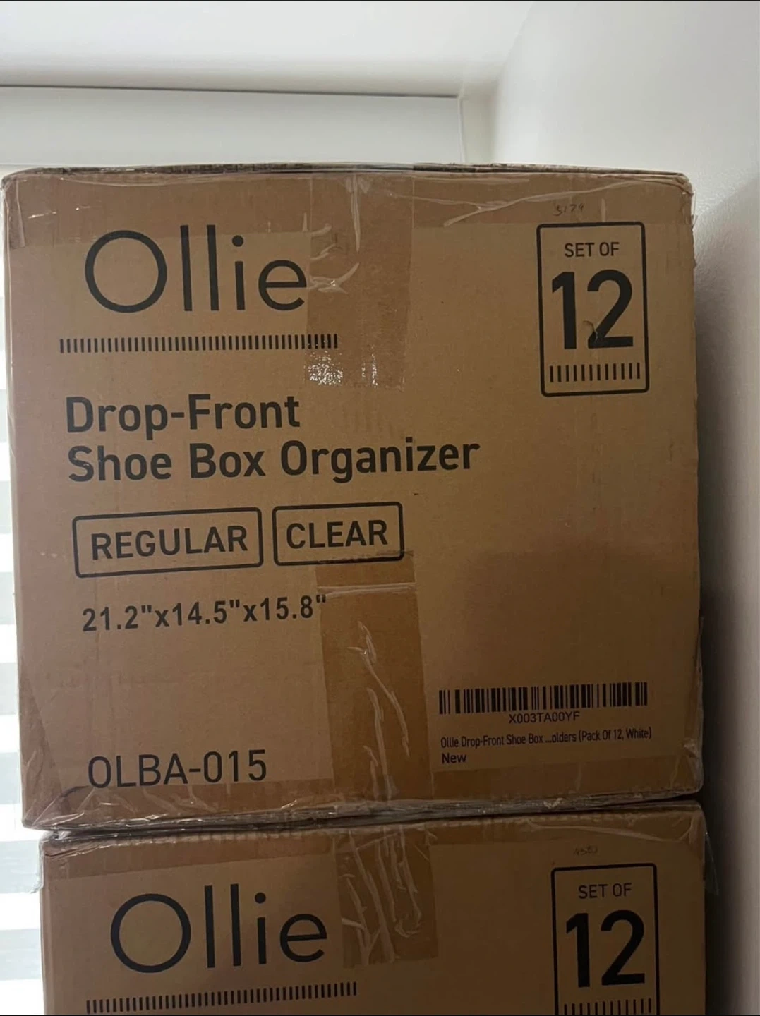 55Keep your shoes organized with this set of 12 Ollie Drop-Front Shoe Box Organizers! They are clear, regular-sized, and come in their original boxes. Each box measures 21.2" x 14.5" x 15.8". These organizers are stackable and make it easy to see and access your shoes