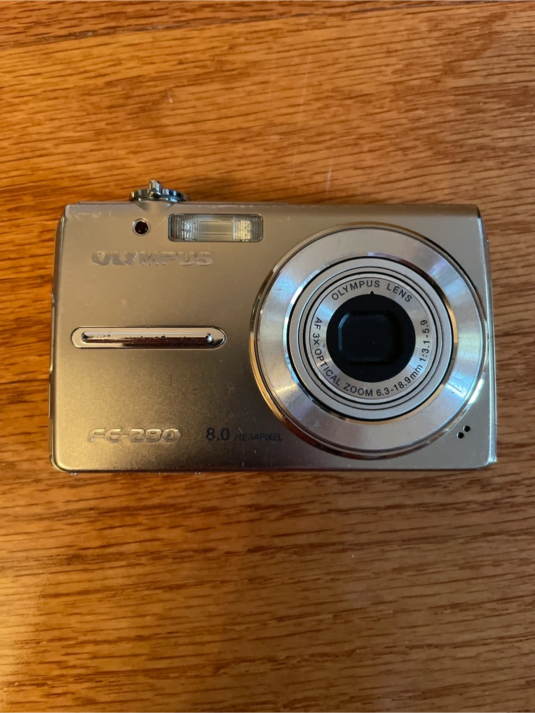 Selling an Olympus FE-280 digital camera. It's an 8.0 megapixel camera with optical zoom. Great for someone looking for a simple point-and-shoot! Rugged. Let your kid take random pictures with a real camera. Just the camera. No cables or boxes. As-is. Test and working. But you’ll need your own AC adapter. Comes with a 512mb memory card.
