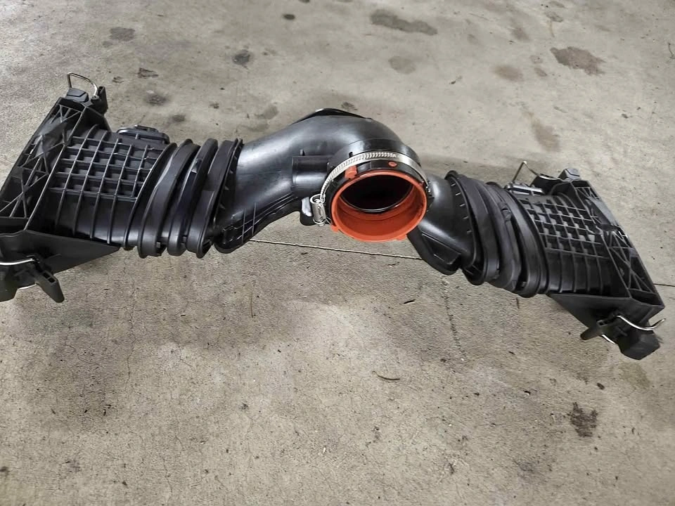 15Near new spare part OM642 Mercedes diesel air intake with turbo seal and MAF sensors, $125