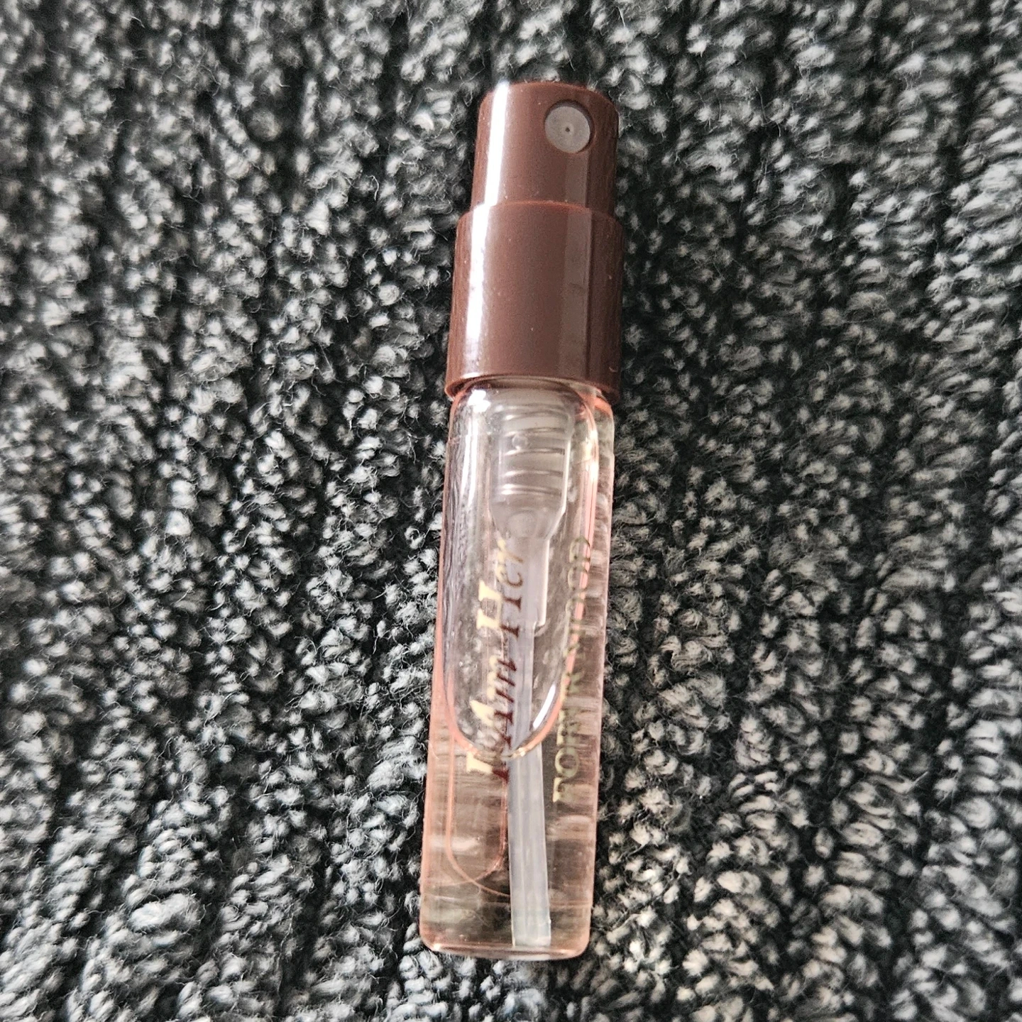 A small spray vial of Forvr Mood I am Her sample. Perfect for travel or trying out a new scent.