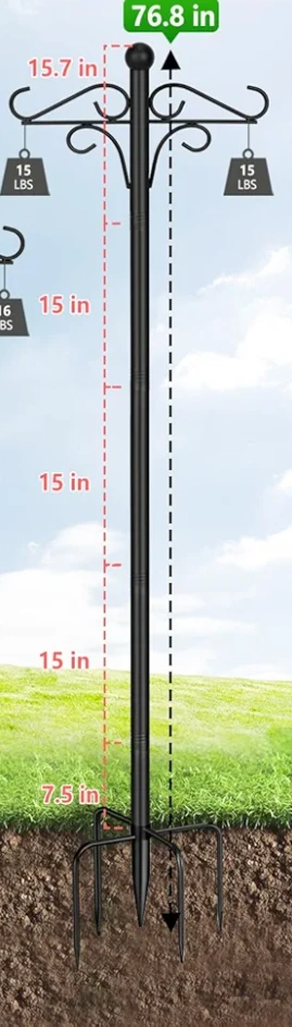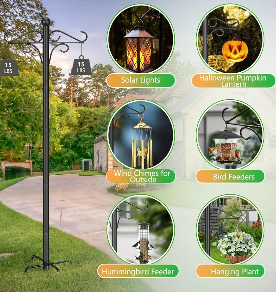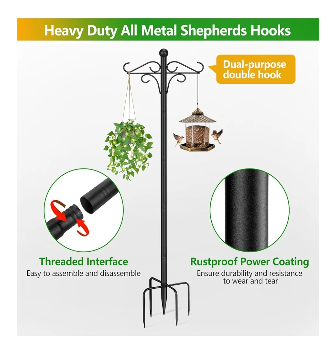 Thickened Double Shepherd Hook Stand for Hanging Plants, Lanterns, Solar Lights, Wind Chime, Hummingbird Feeder, Garden