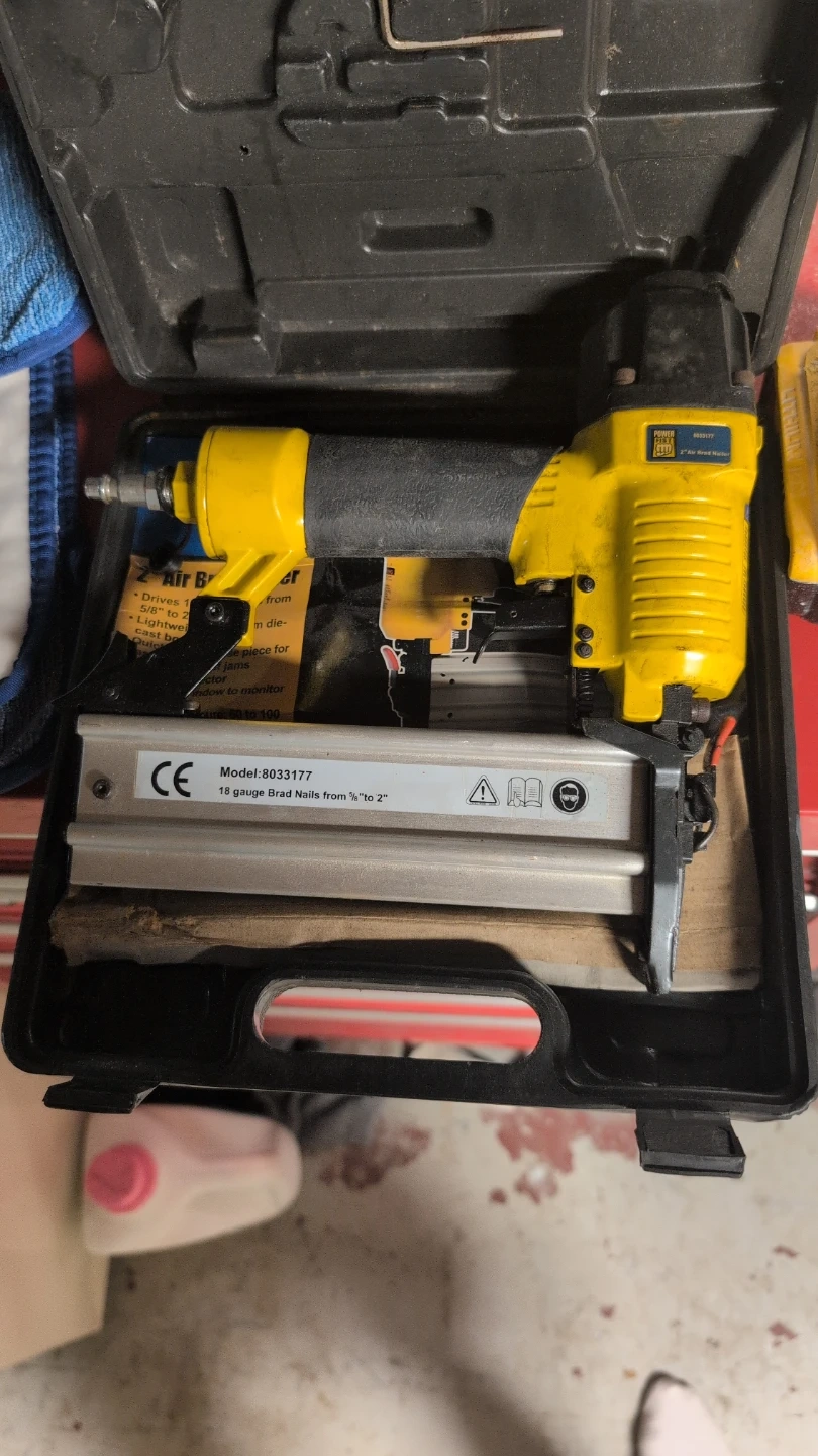 This is a Power Fist 18 gauge air brad nailer. It drives brad nails from 5/8" to 2" long. It's a lightweight, cast body tool for quick fastening. Includes original case.