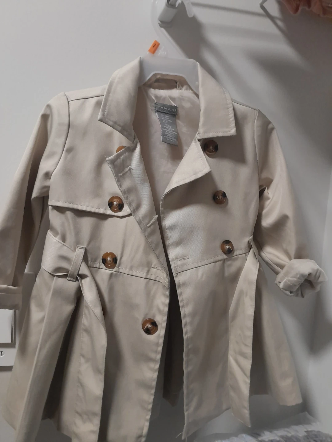 A cute Tahari trench coat for kids! It's a size 4 and in great condition. Perfect for keeping your little one stylish and warm on those cooler days