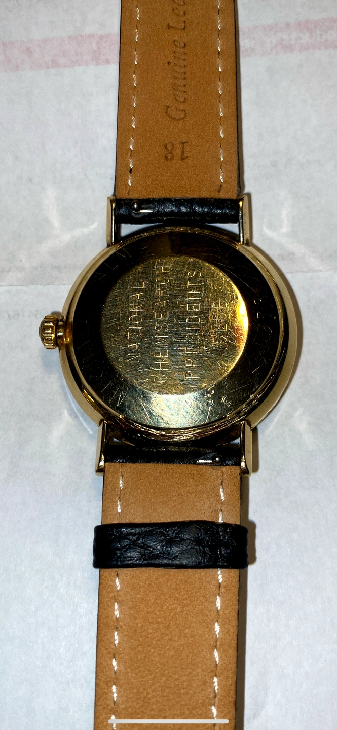 71Tested and stamped 14K. Without straps, the weight is approximately 28g, including the watch insides. Unit works, not being sold as scrap, but priced in that area. See pics for more info. Engraved and in shown condition - as is Will entertain reasonable offers only