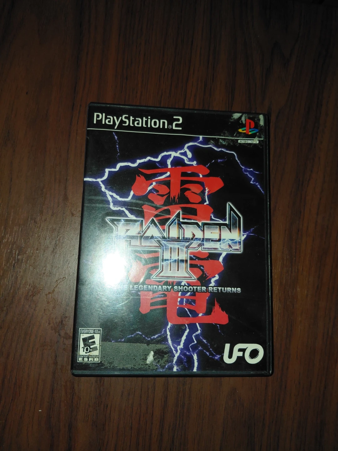 This is the Raiden III game for PlayStation 2. It's a legendary shooter returns title. The ESRB rating is Everyone 10+.
