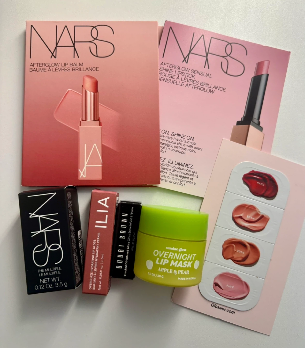 NARS afterglow sensual shine lipstick sample with 4 shades - dolce vita, orgasm, devotion and on edge