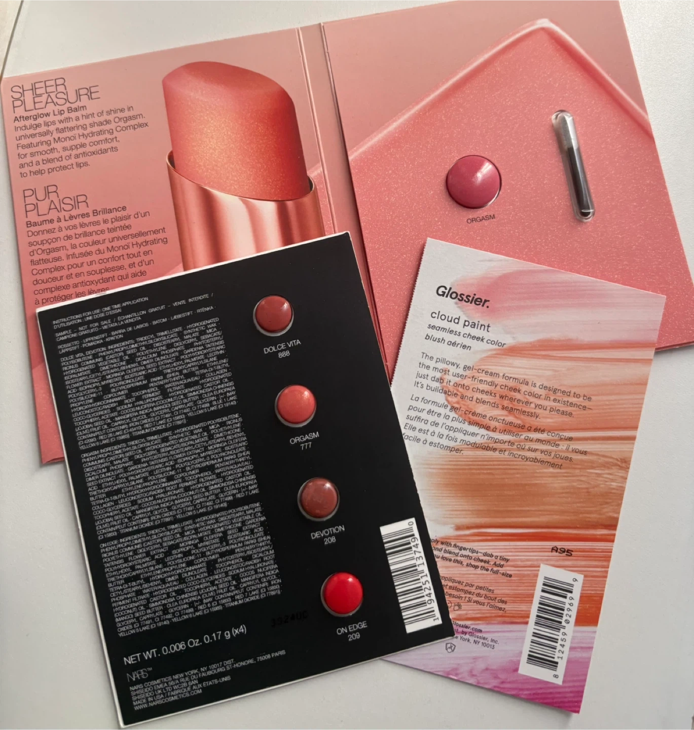 Glossier cloud paint blush sample ( haze,beam, dusk and puff )