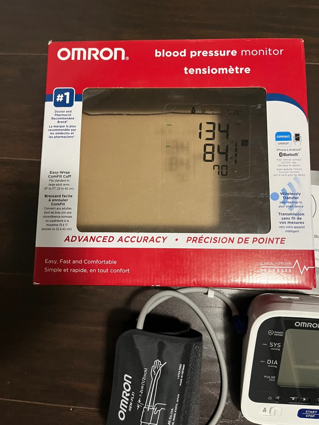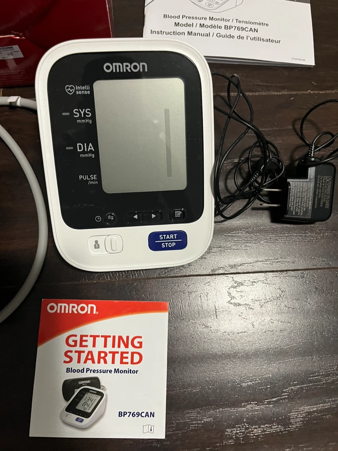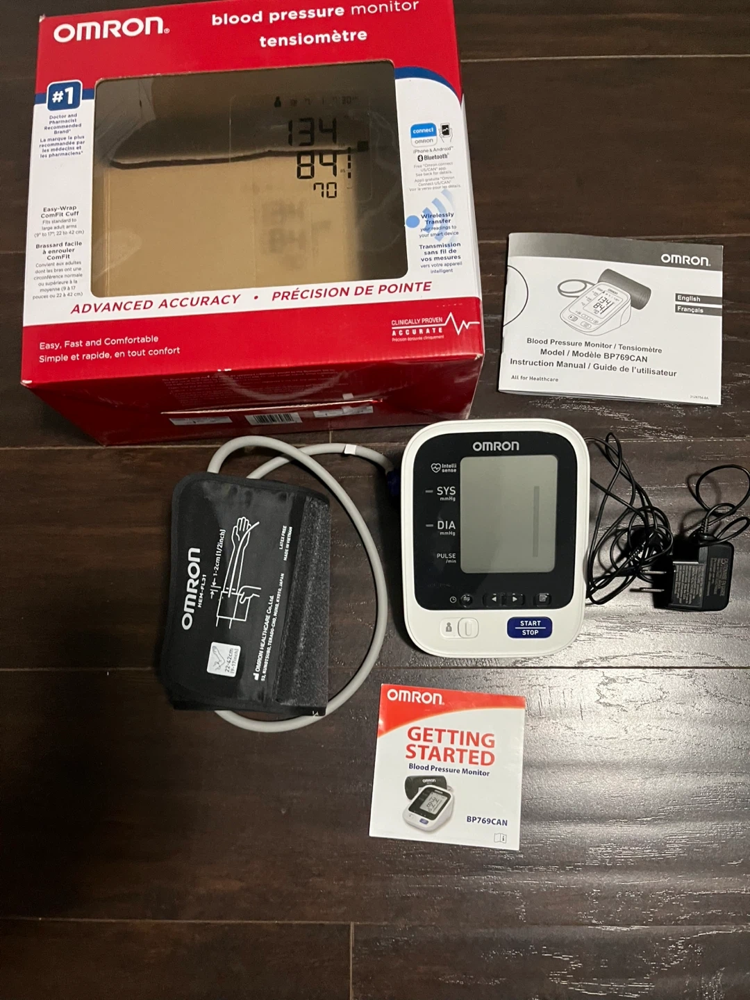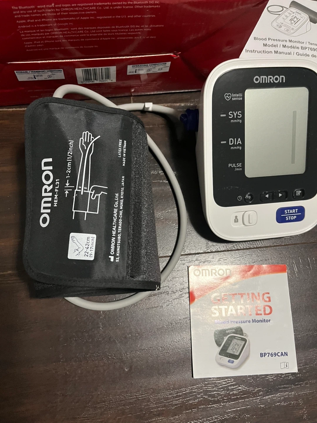 Selling an Omron BP769CAN Blood Pressure Monitor in great condition! It comes with the box, instruction manual, and all original components. The cuff size is 9" to 17" (22 to 42 cm). Easy to use and provides advanced accuracy for monitoring your blood pressure at home
