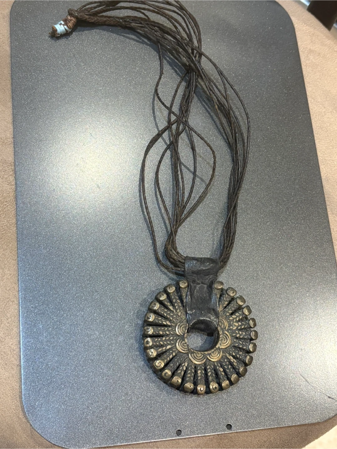 This item is a traditional Dogon sun pendant from Mali, commonly known as a "soleil".