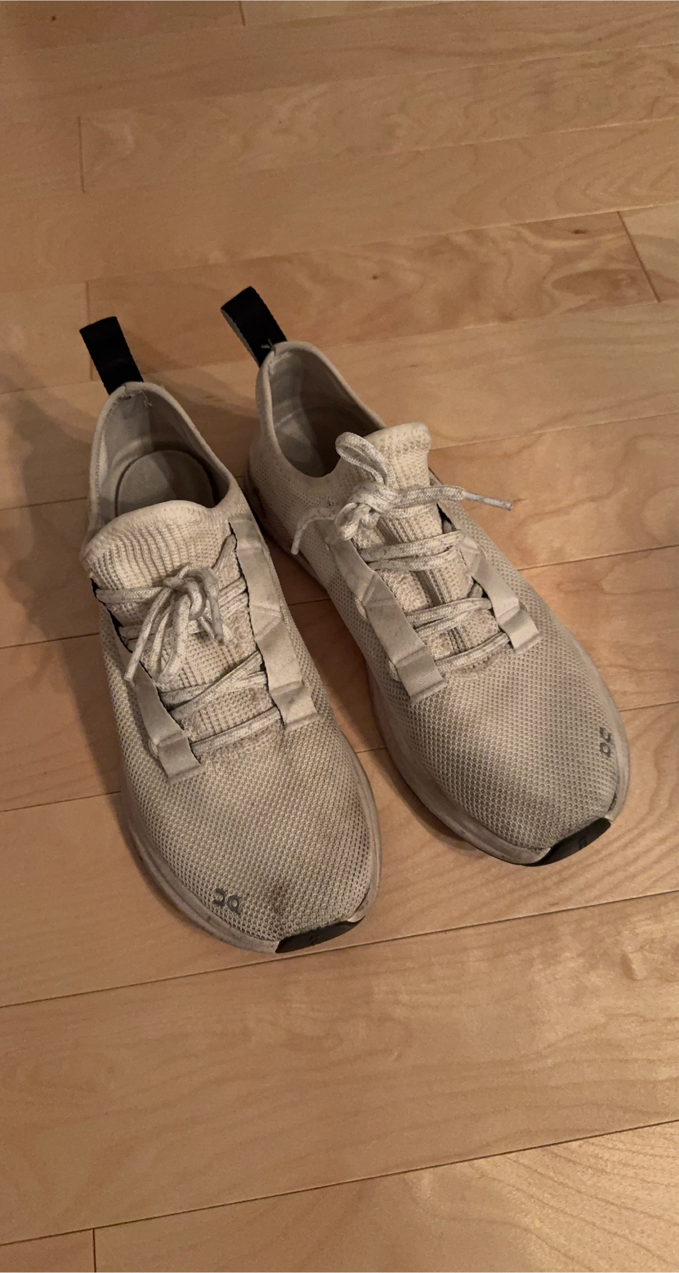 Selling a pair of On Cloudeasy running shoes in white. They show some signs of wear, but still have lots of life left! Great for everyday wear or light workouts