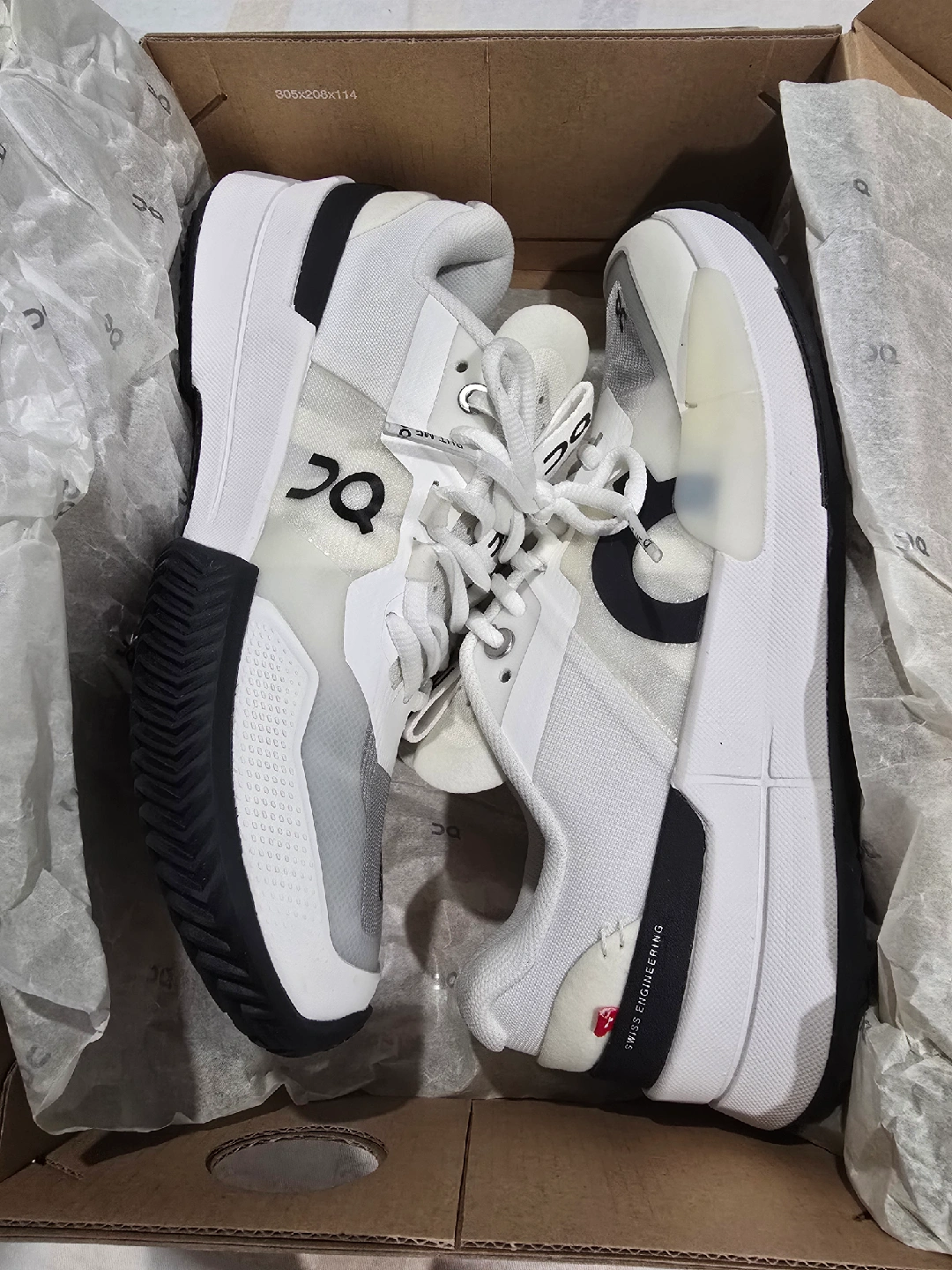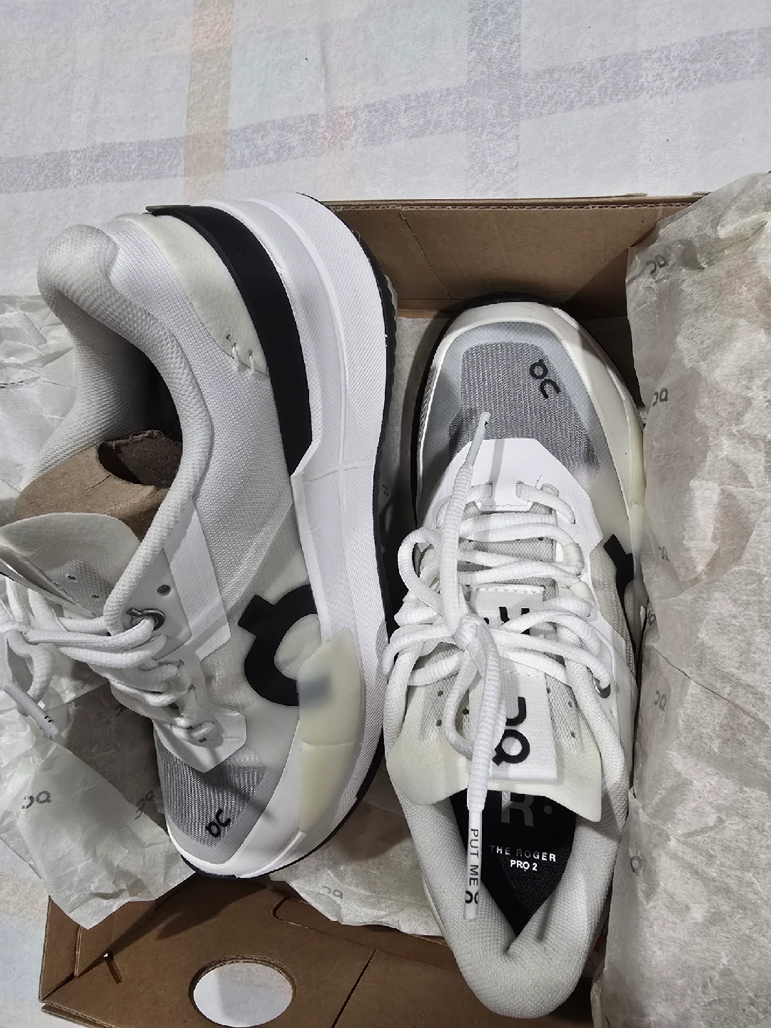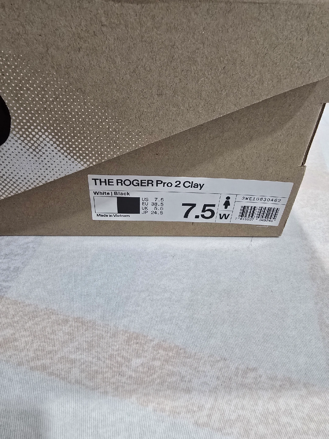 10Selling a pair of On The Roger Pro Clay sneakers in white and black! They are size 7.5W (US). They come in the original box.