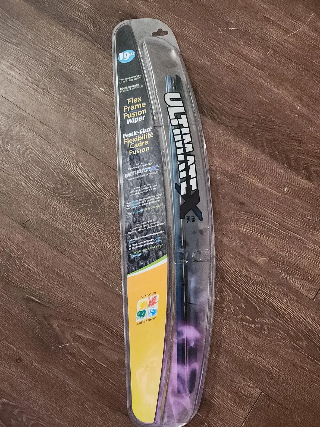 This is an Ultimate brand 19-inch flex frame fusion wiper. It's designed with water repellent technology for a sleek, smooth, and quiet operation. It repels rain, sleet, and snow.