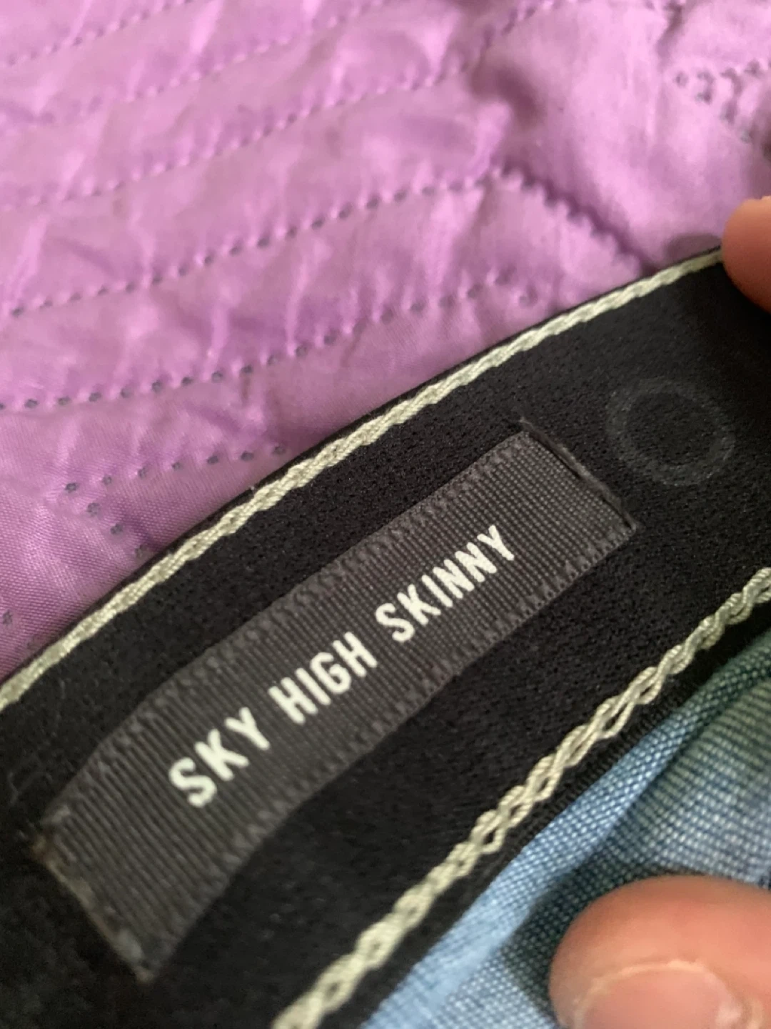 These are Torrid Premium Sky High Skinny Jeans. They're made with 65% cotton, 20% rayon, 13% polyester, and 2% spandex. The size is 34 x 32.