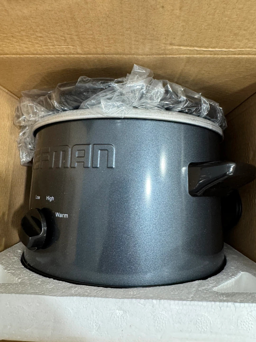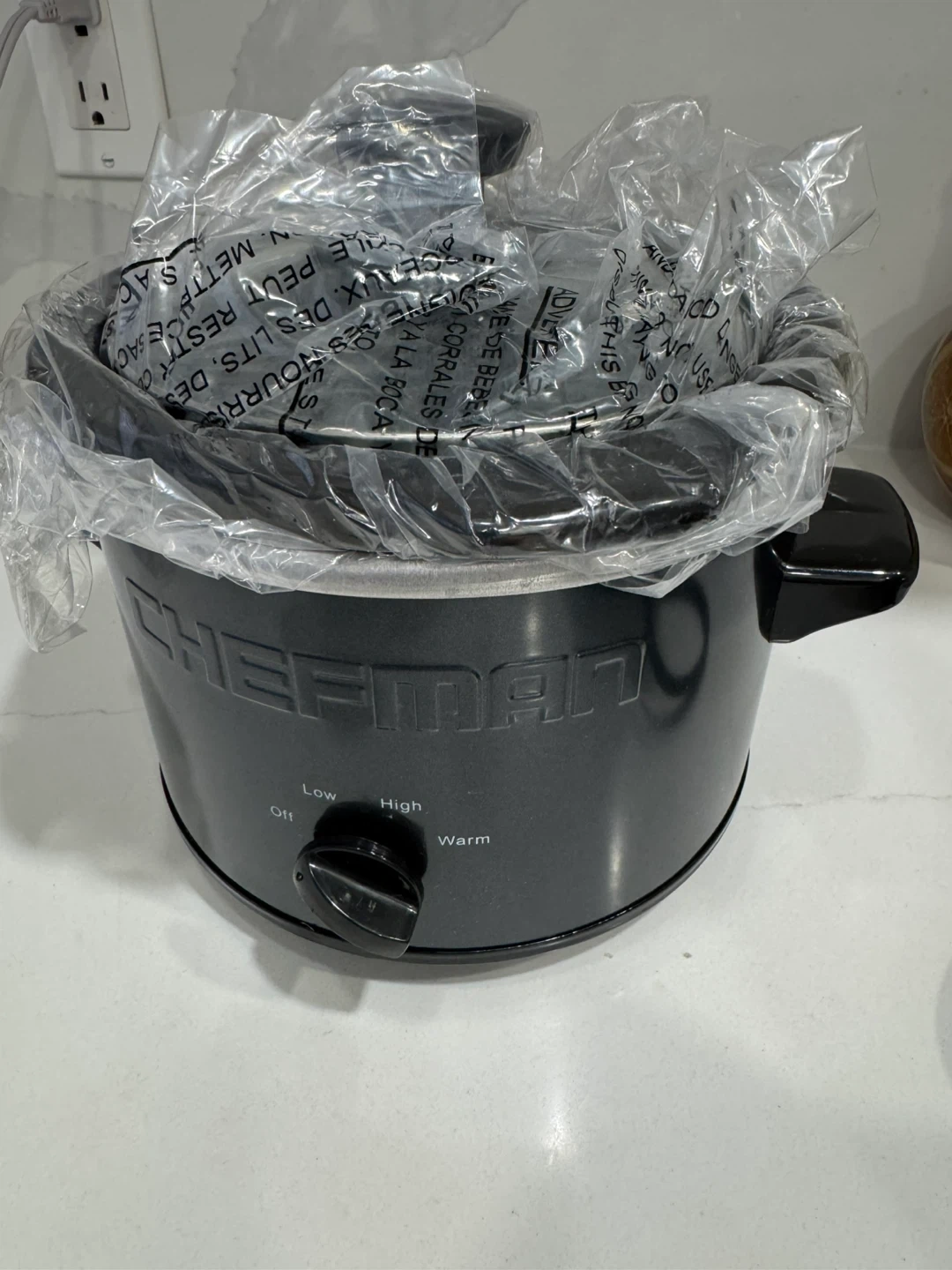 Brand new Chefman slow cooker with removable stoneware insert and matching lid. Perfect for preparing delicious meals for 2 or more people β great for soups, stews, chili, and more!