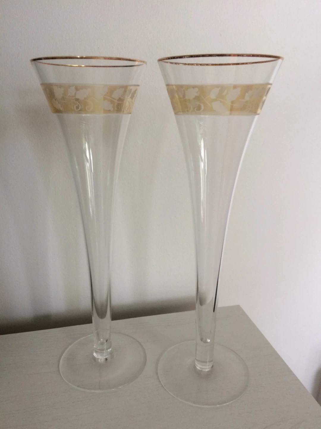Vintage Champagne flutes from Laura Ashley in the UK. Only used for staging.