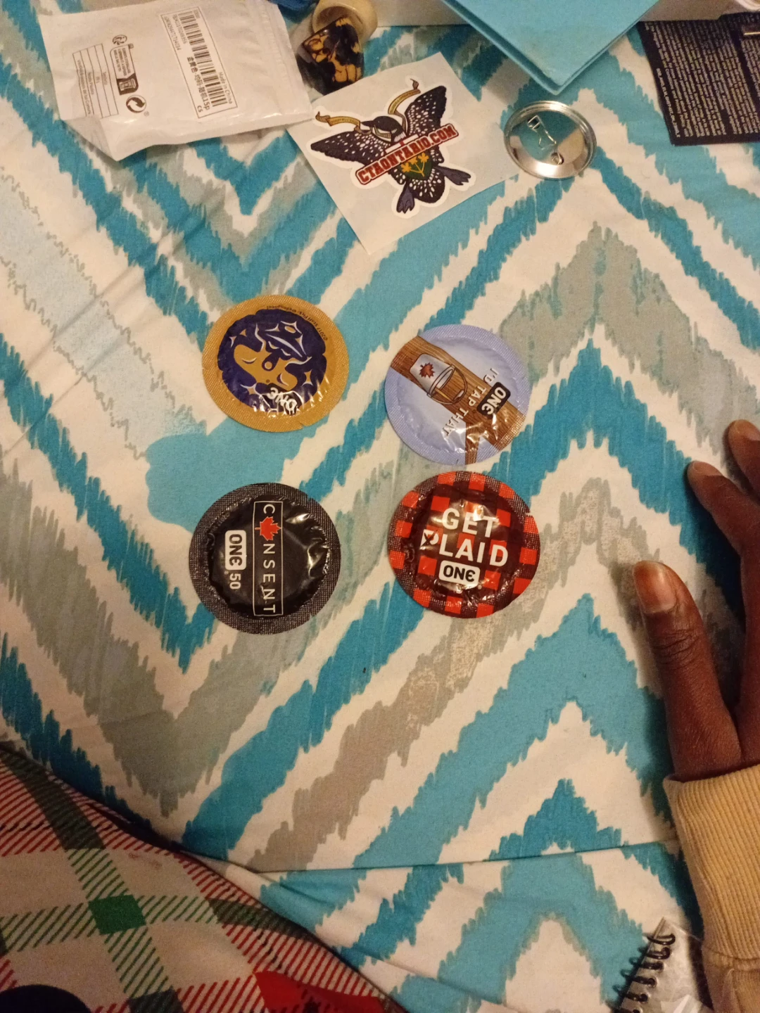 25Selling a variety pack of ONE condoms. Includes different styles like 'I'D TAP THAT', 'GET PLAID', and 'CONSENT'. Perfect for trying out different options!