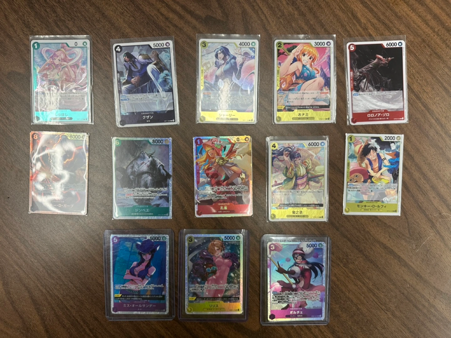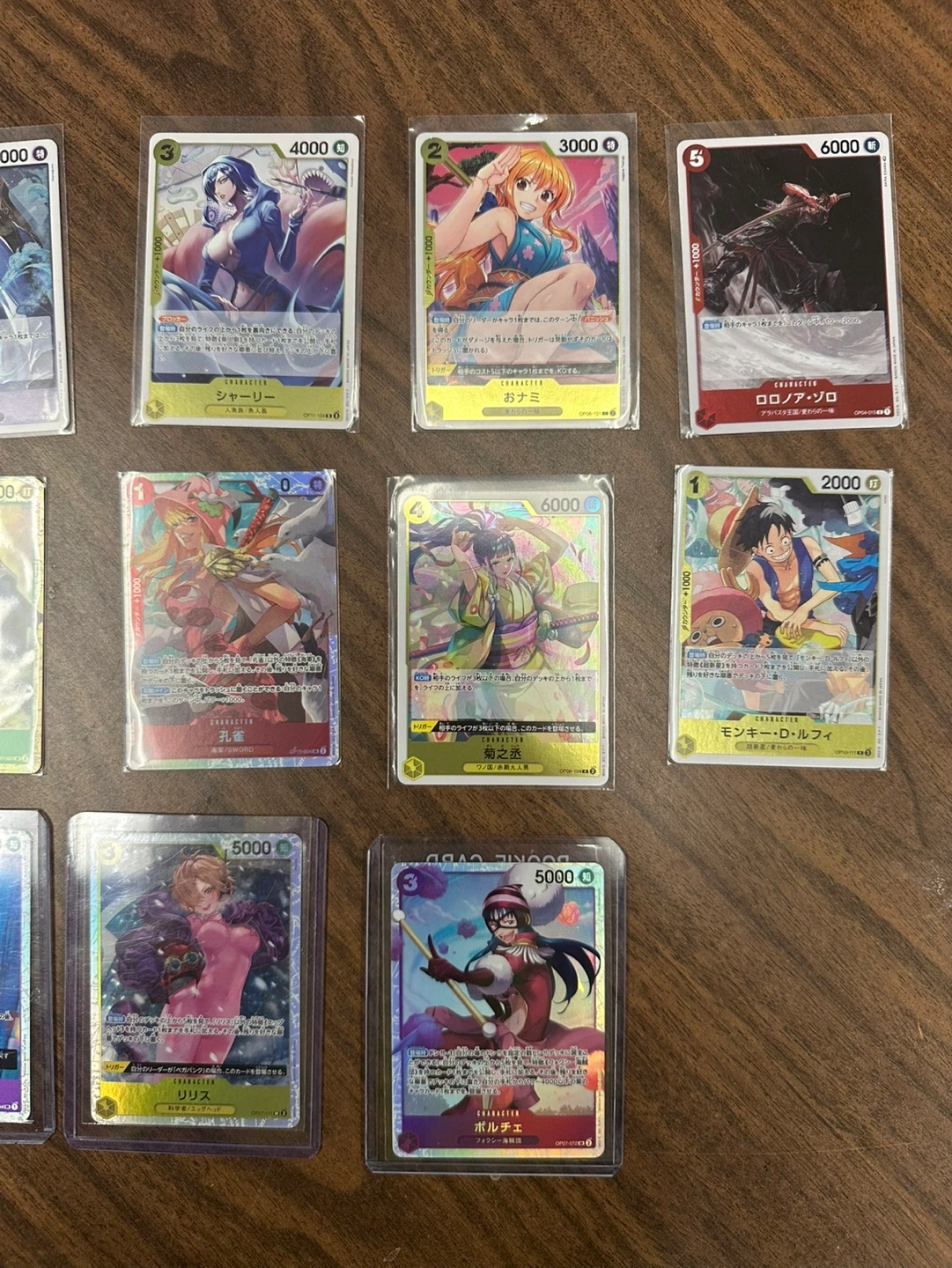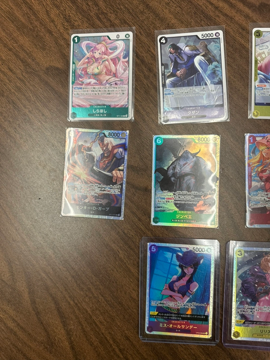 I have 13 Japanese one piece cards. All holos and either R or SR. All cards are in mint condition. $40 for everything or if you want specific cards let me know.