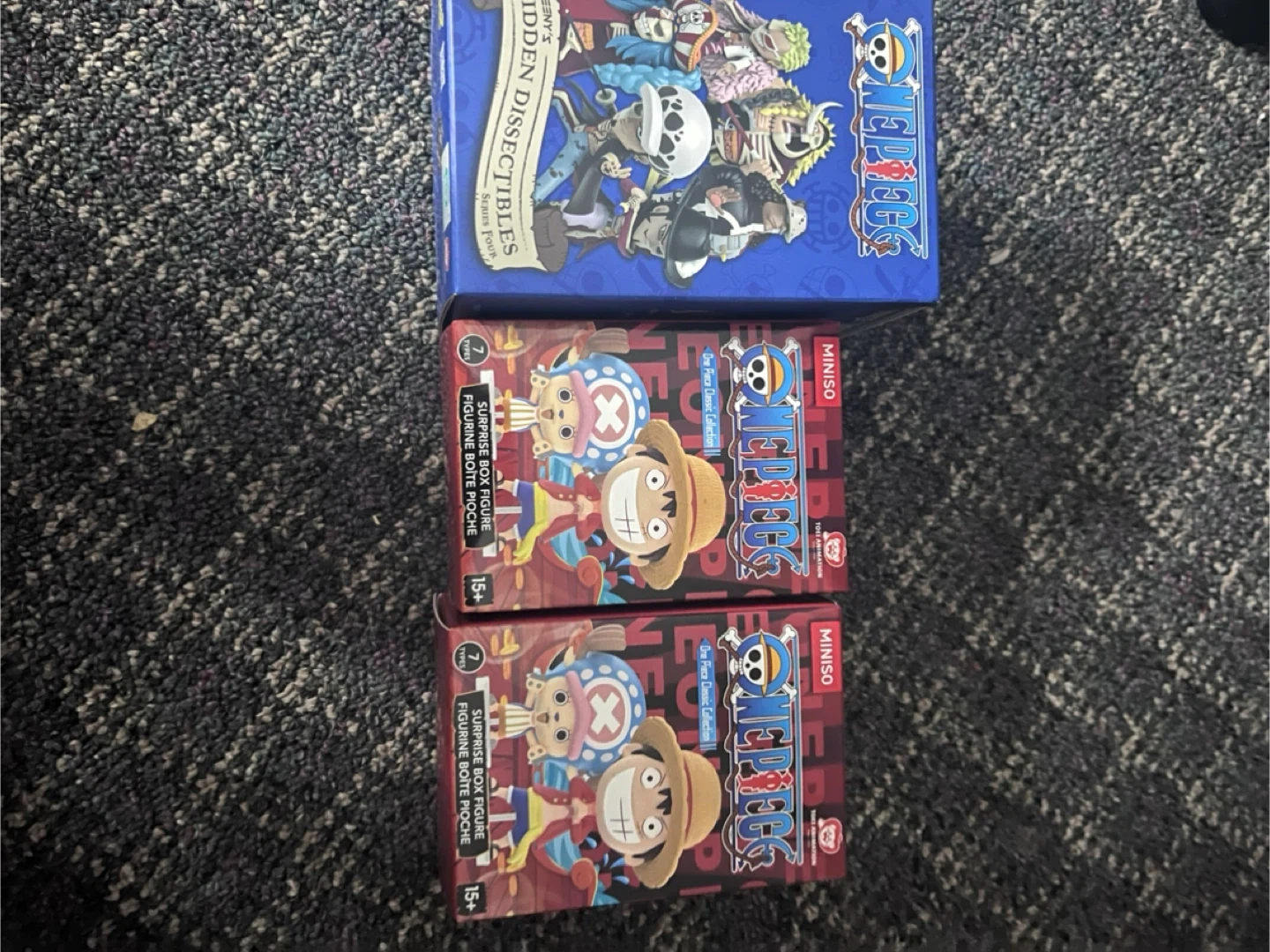 I have some One Piece Miniso Surprise Box Figures for sale! They are brand new and still sealed in their original packaging. Each box contains a random One Piece character figure. Great for fans of the series!