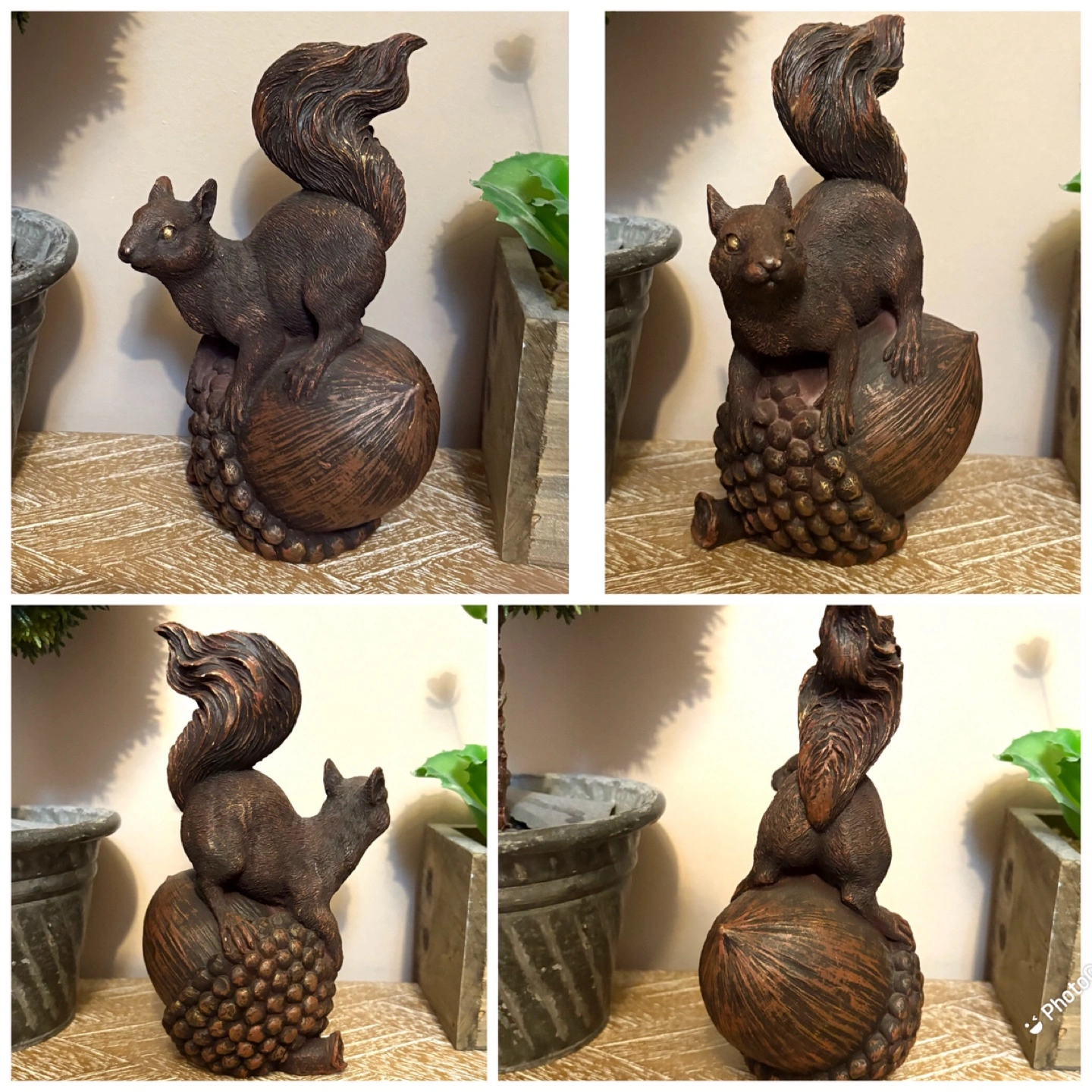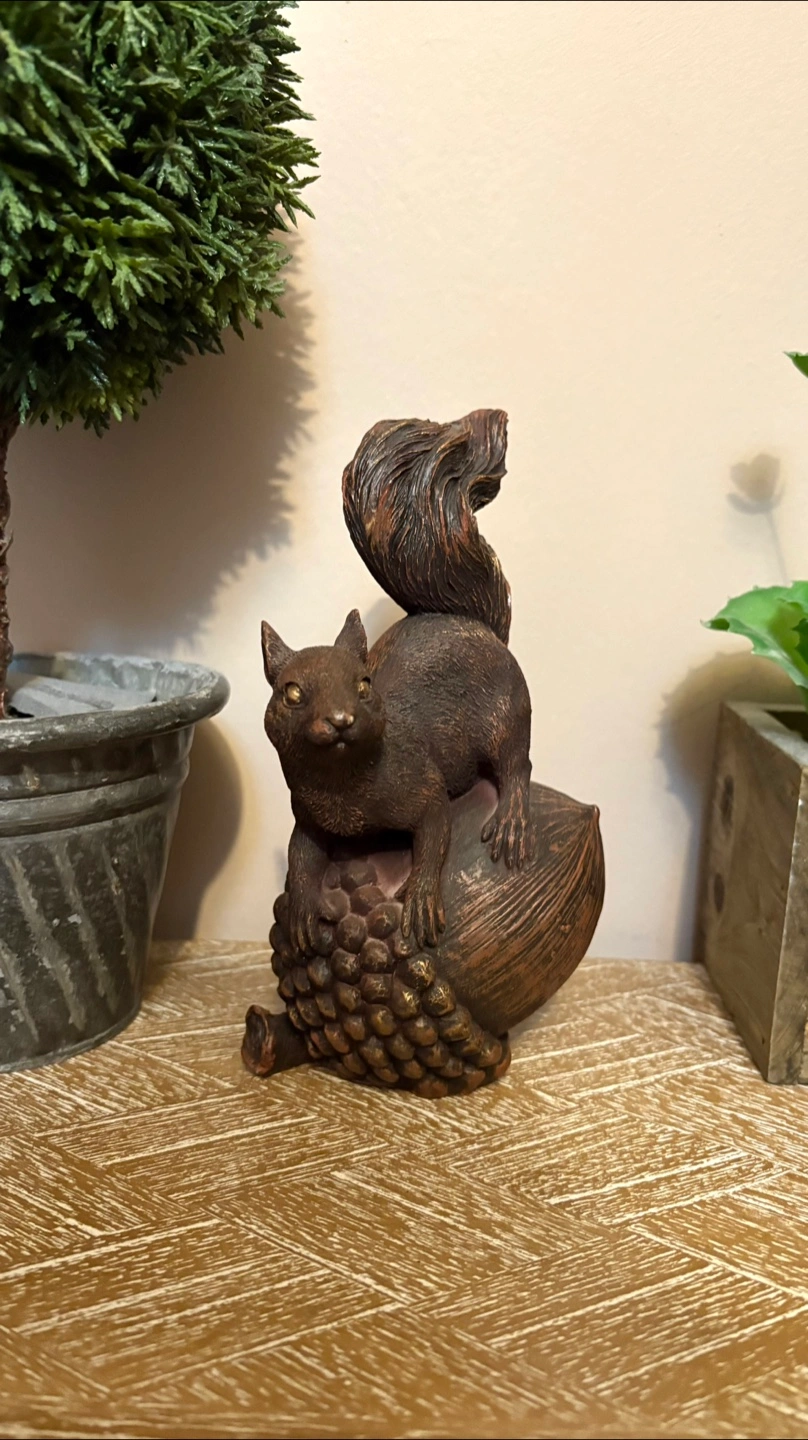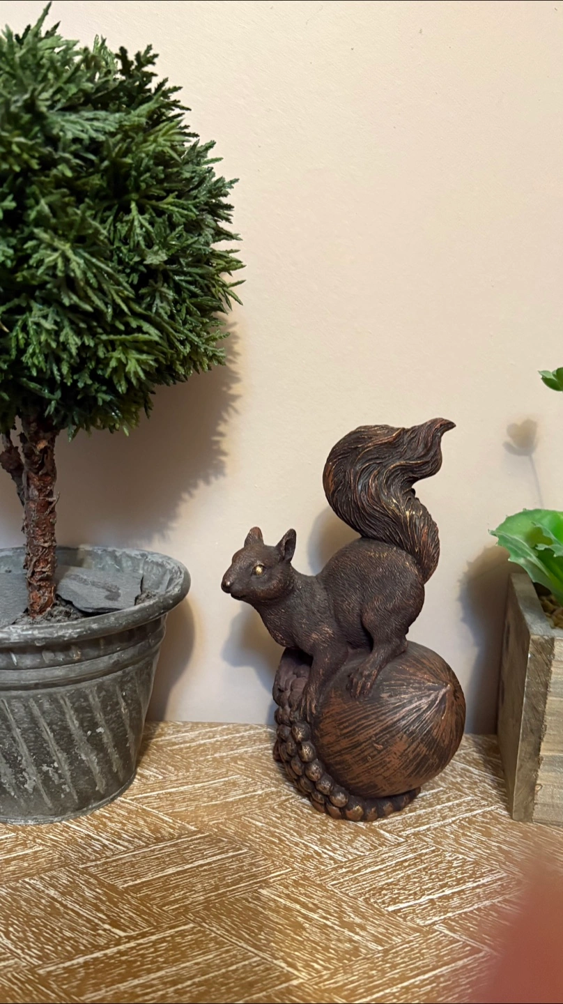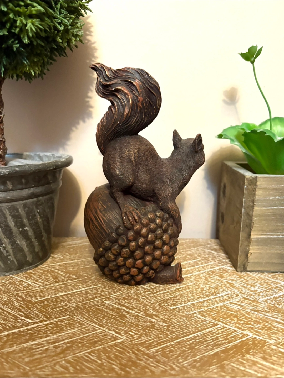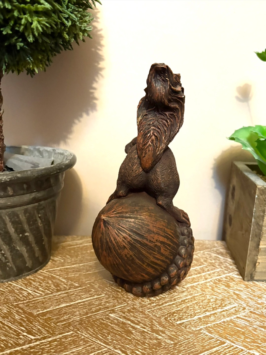 60Cute squirrel figurine sitting on a nut. It's a great piece for adding a touch of nature to your home decor 7.5” tall