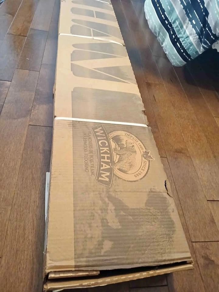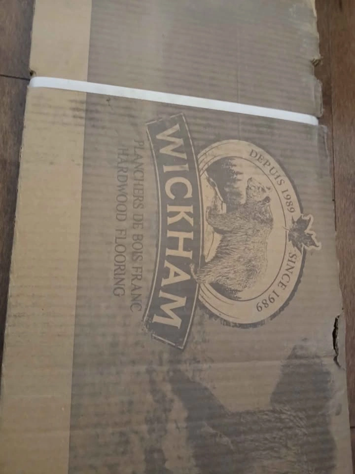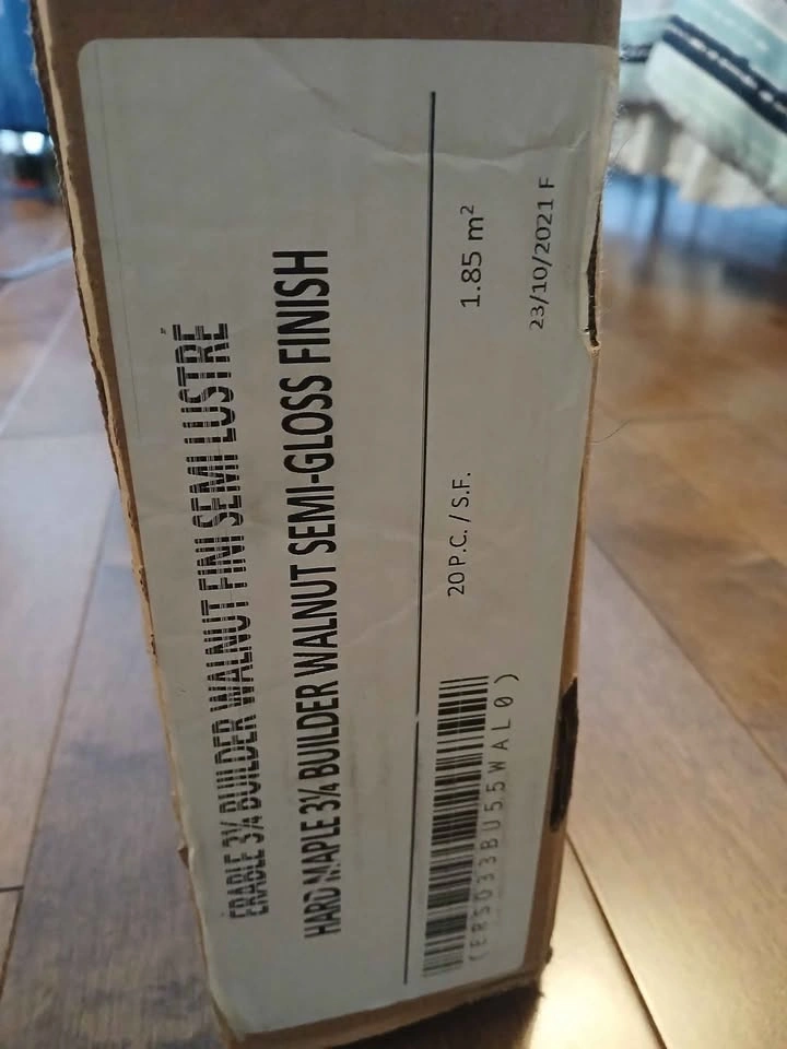 60New and unopened box of Hard maple 3 1/4 builder walnut semi gloss finish