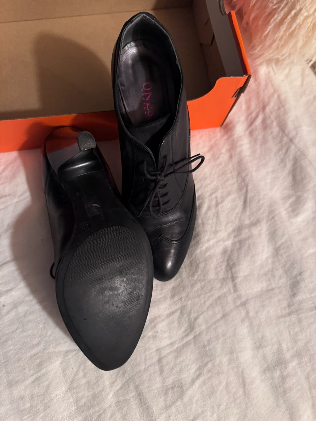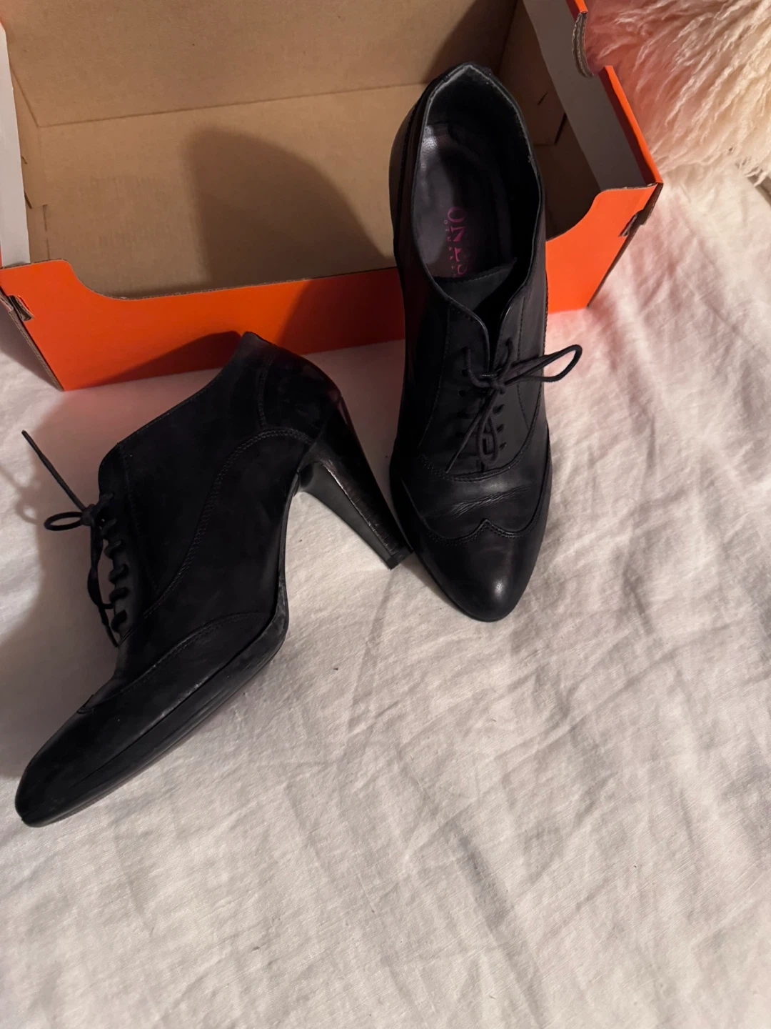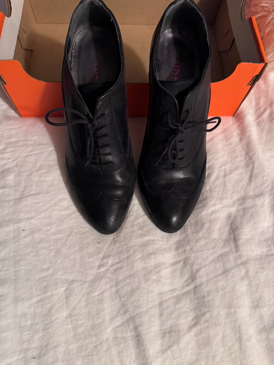 81Selling a pair of black leather heeled oxford booties in size 40. They are in good condition. Perfect for adding a touch of sophistication to any outfit