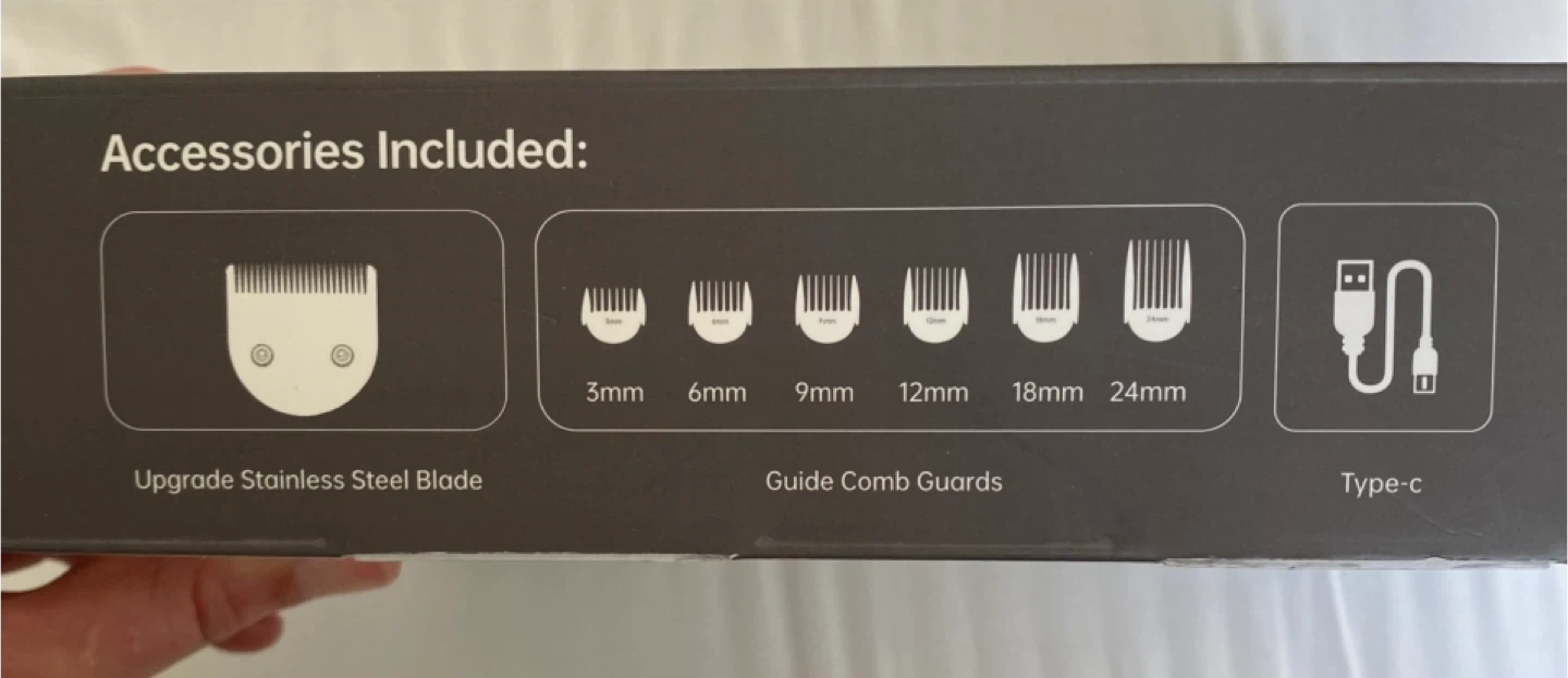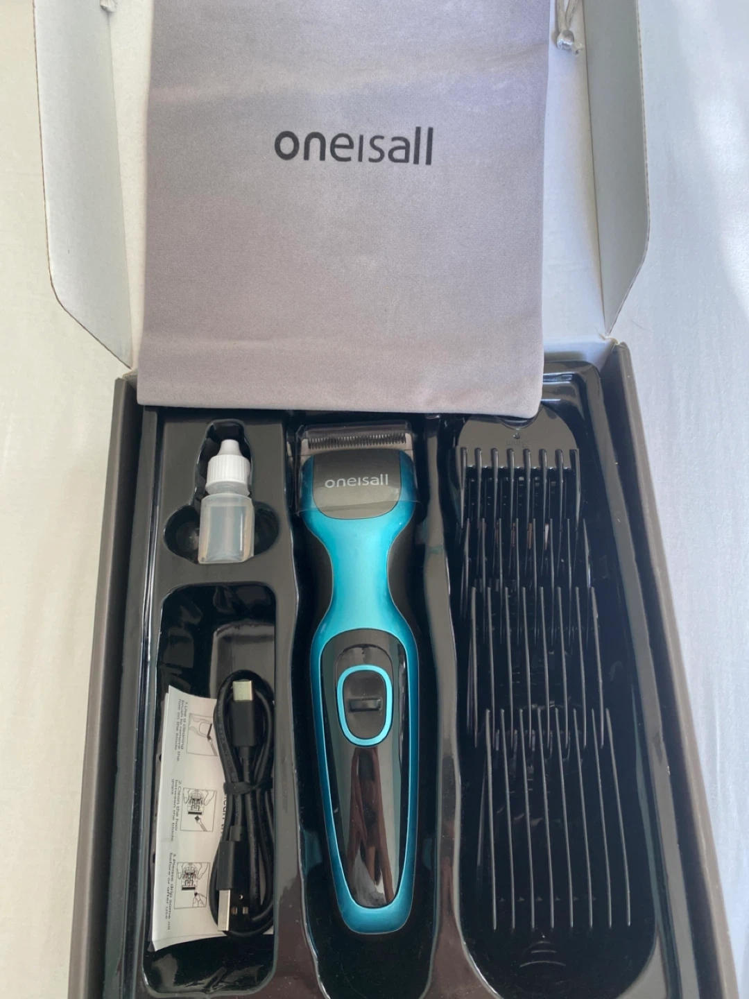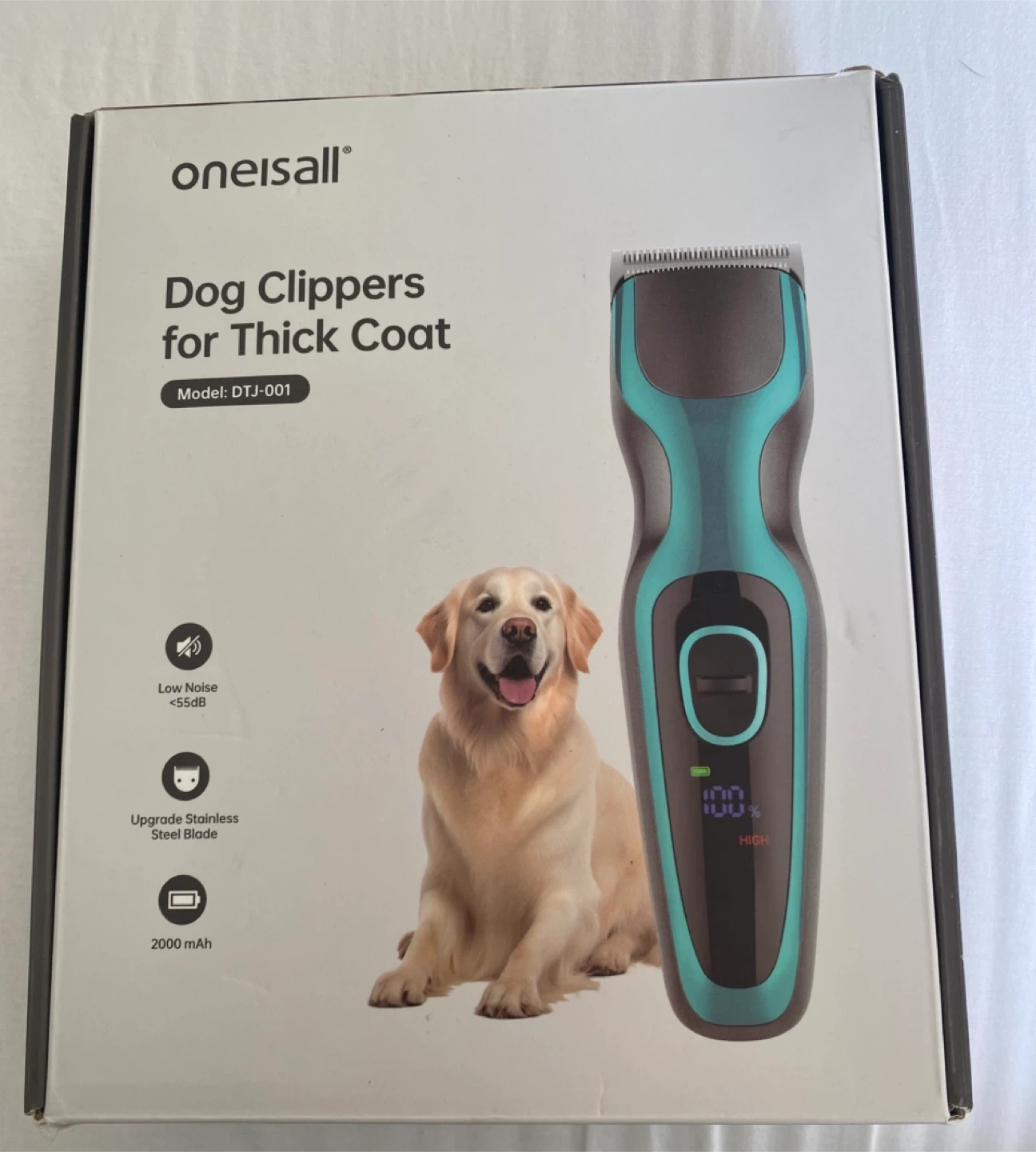 28I'm selling a brand new Oneisall dog clipper set for thick coats! It comes in the original box with all accessories included. - Model: DTJ-001 - Low Noise <=55dB - Upgrade Stainless Steel Blade - 2000 mAh battery - Includes guide comb guards (3mm, 6mm, 9mm, 12mm, 18mm, 24mm), Type-C charger, and blade oil