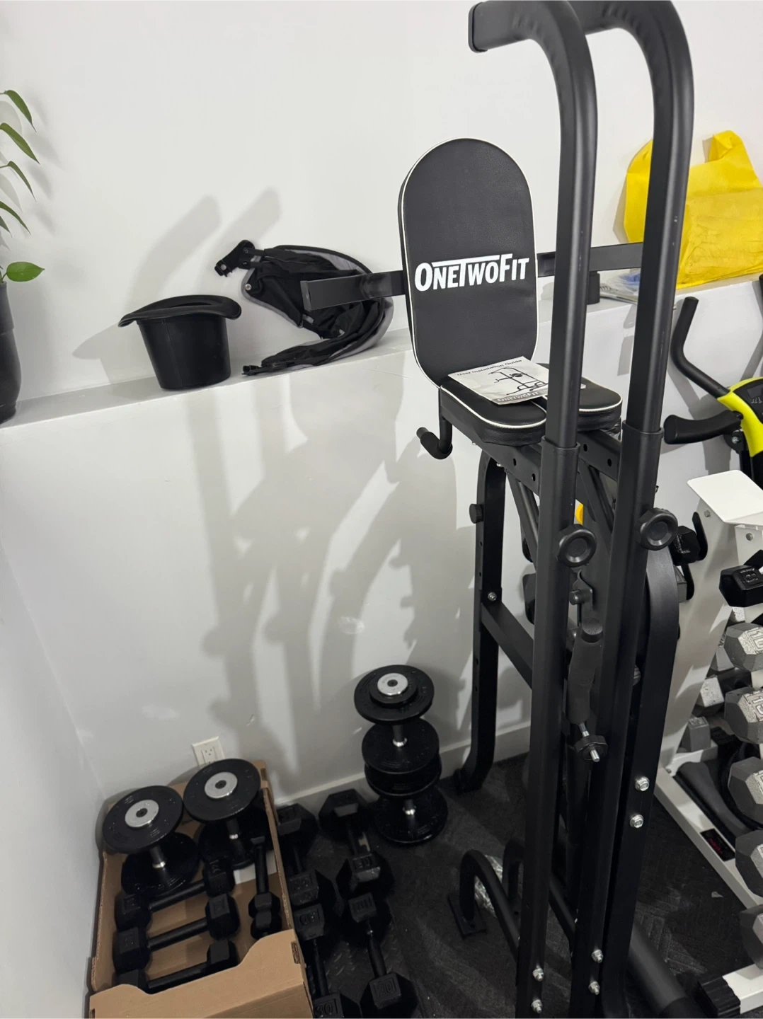 104Selling a onetwofit dip station and pull up bar combo. It's in great condition and ready for a new home gym. Perfect for getting in shape! Like new pick up at whitehorn