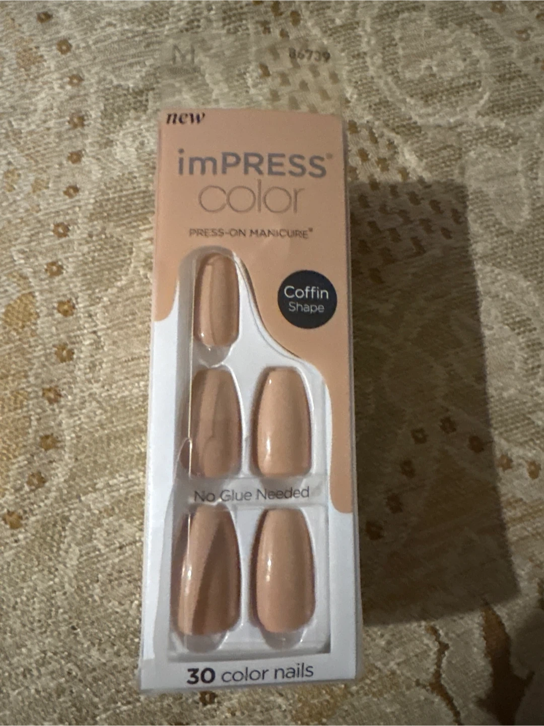 This is a new imPRESS Color press-on manicure kit. It includes 30 color nails in a coffin shape. No glue is needed for application!