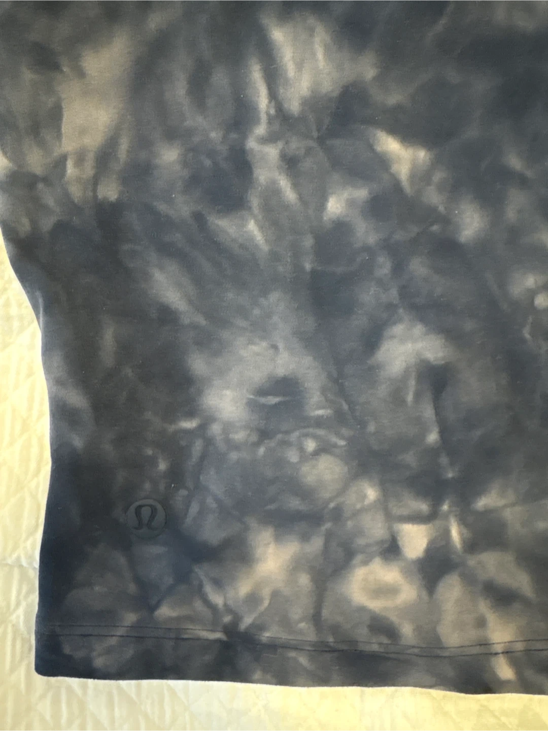 This Lululemon mock neck long sleeve top features a tie-dye pattern. It's made from 81% nylon and 19% Lycra® elastane. Designed in Vancouver and made in Vietnam. Size 10