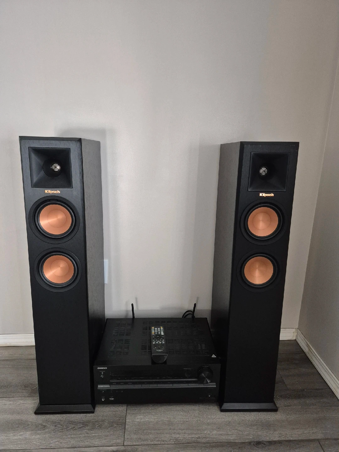 15Selling an Onkyo TX-NR686 receiver along with Klipsch speakers. Great for setting up a home theatre system! The receiver is in excellent condition and comes with a remote.
