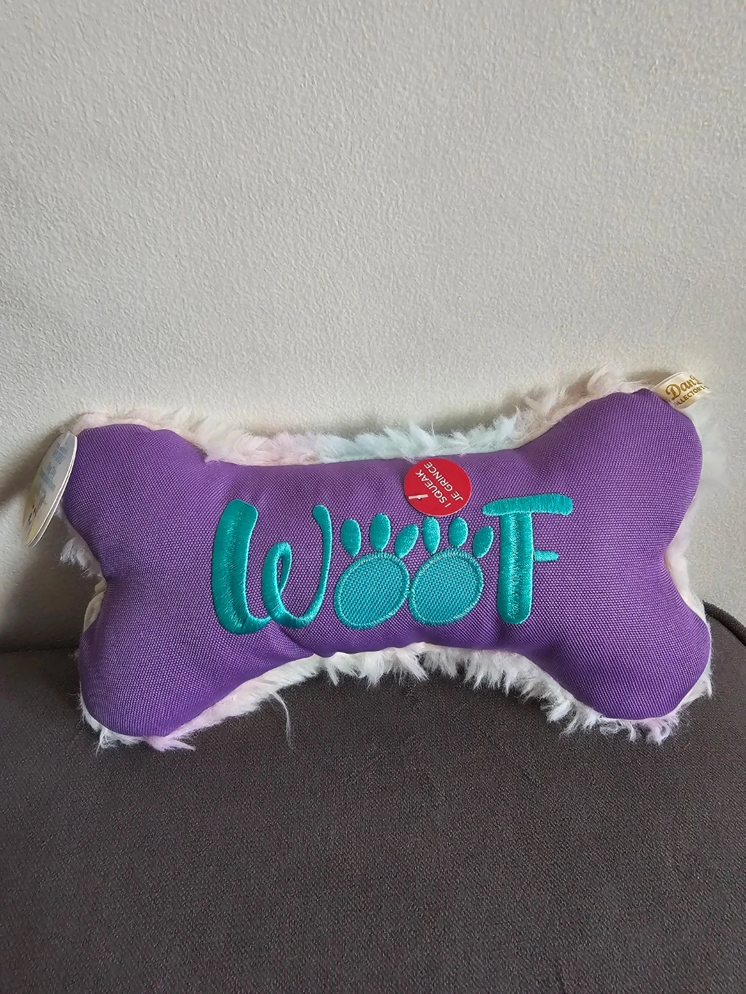 921BNWT Qty: 4 $5/ea. High-quality durable polyester fabric Super soft tie-dye fabric on one side Embroidered "WOOF" on one side Has squeaky spring inside toy FINAL SALE Accepting cash only please