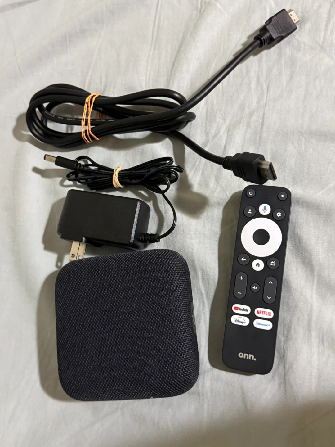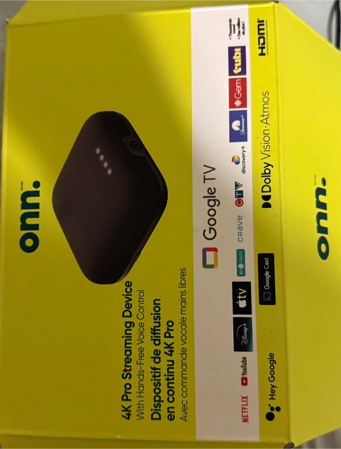 Selling a brand new onn. 4K Pro Streaming Device! It comes in the original box and includes all components: the streaming device itself, a remote, power adapter, and HDMI cable. Enjoy streaming your favourite shows and movies in 4K resolution with hands-free voice control!