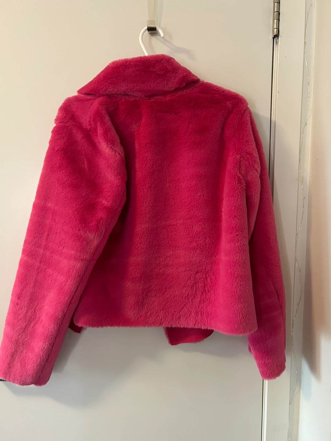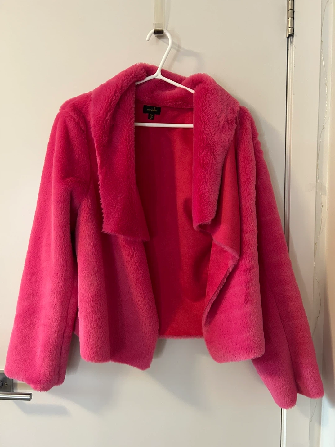 Snuggle up in this cozy Ontwelfth faux fur jacket! It's a vibrant pink and in size XL. Perfect for adding a pop of colour and warmth to your wardrobe