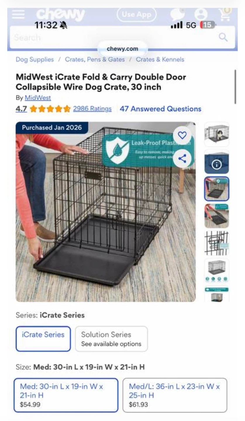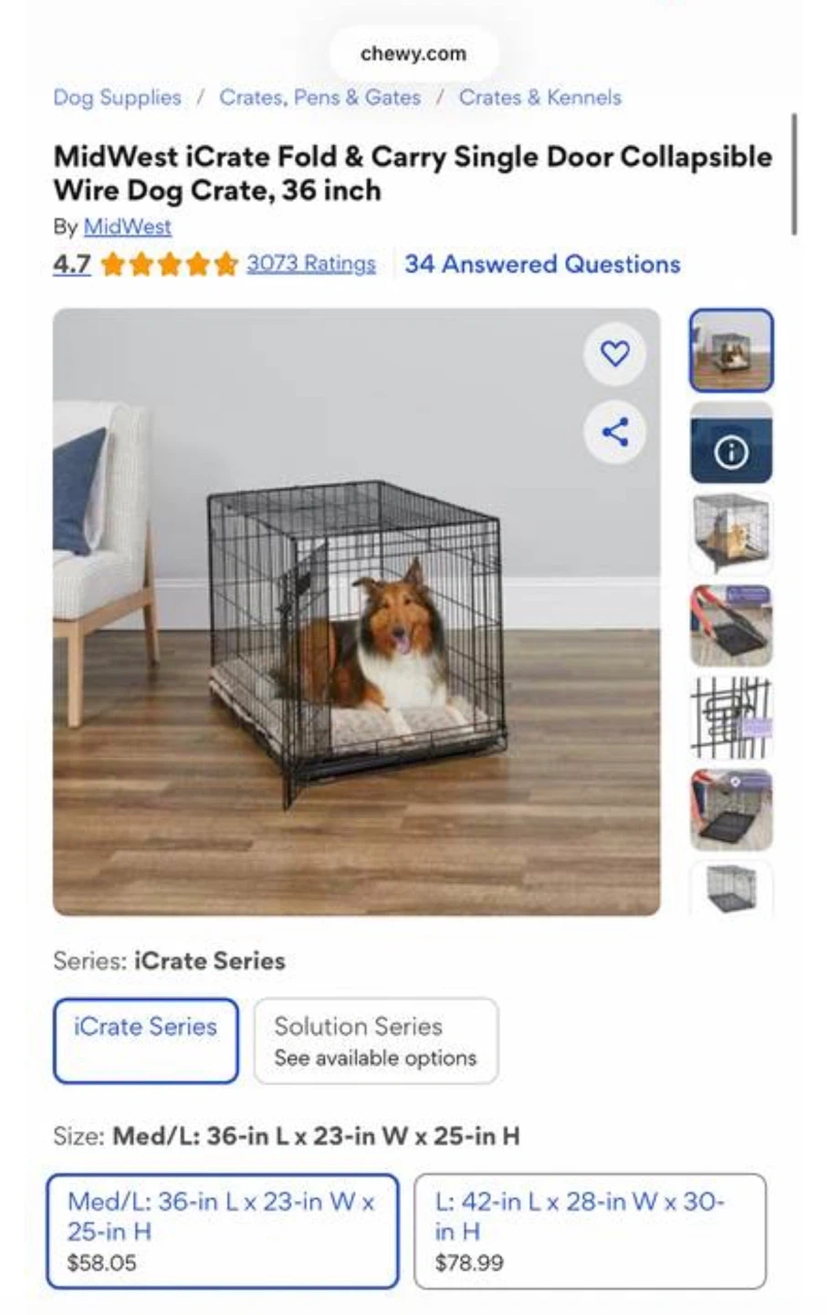 🐶 iCrate single door dog crate measures 30L x 19W x 21H inches and is suitable for small and medium dog breeds with an adult weight up to 50 pounds.