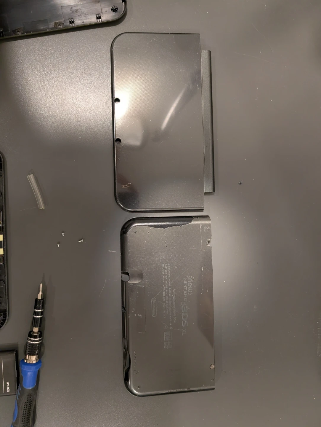 New 3DS XL, top screen powers on but does not display anything, right speaker has detached and requires soldering, home button does not work, shell is scratched up and chipped. I would only recommend buying if you are familiar with repairing or are going to take it to a repair shop. Powers on, all buttons except home button are functional, and the bottom screen works. Stylus included, and a larger battery that I installed a while ago before it broke.