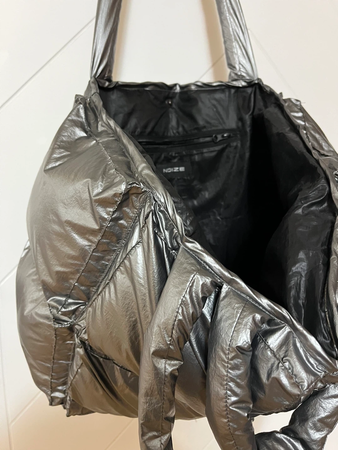 NOIZE Puffer Tote Bag - Metallic Silver