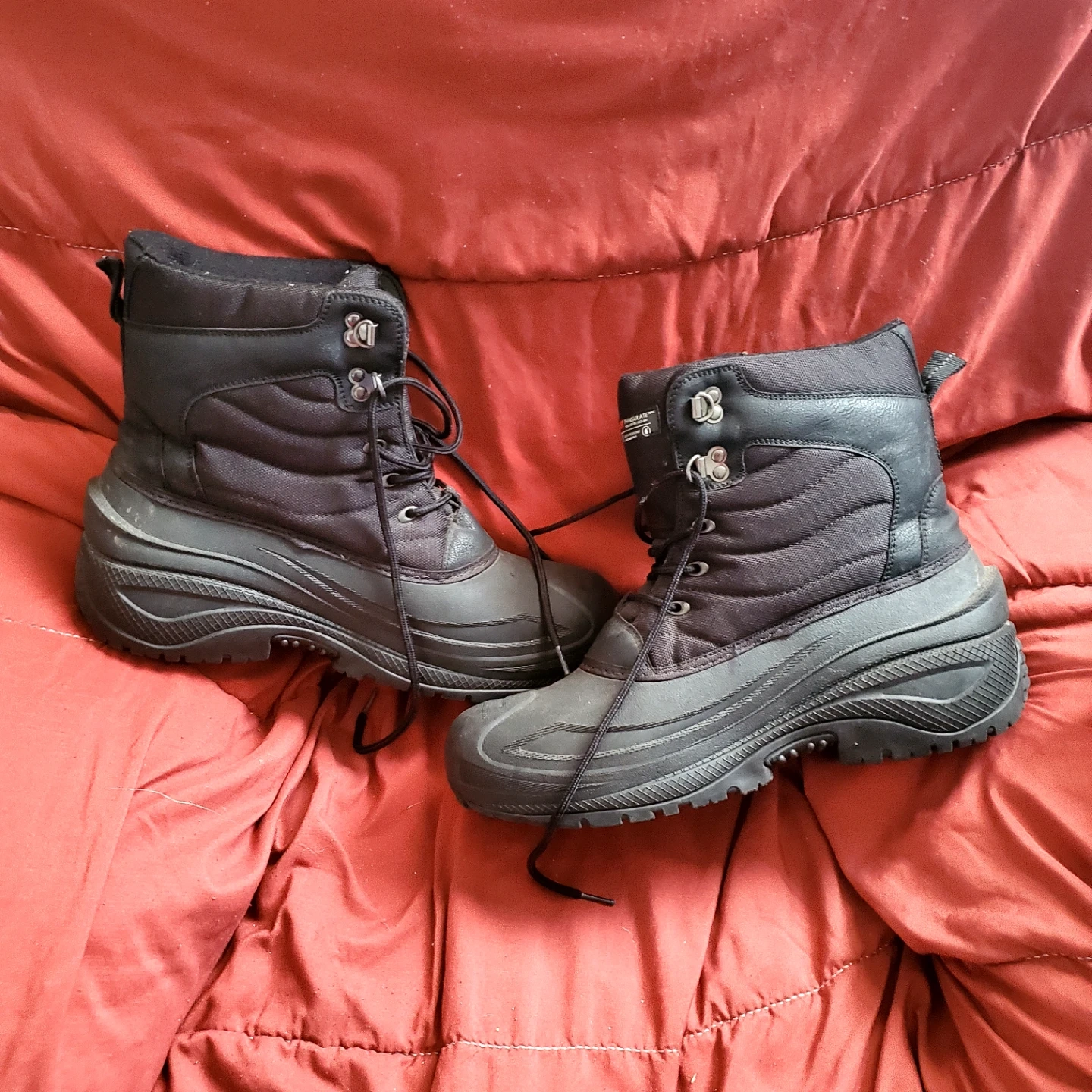 These Weather Spirits winter boots feature 3M Thinsulate insulation for warmth. They're water-resistant and made in Canada. The boots are black with a durable sole. If your in need...let me know.