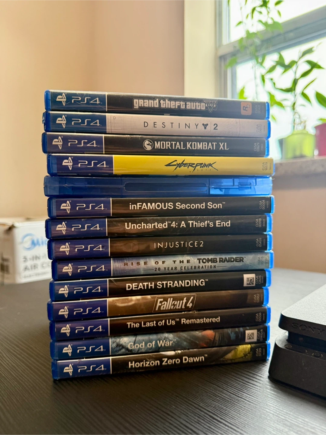 GTA V, Destiny 2, Mortal Kombat XL, Cyberpunk 2077, InFAMOUS Second Son, Uncharted 4, Injustice 2, Rise of the Tomb Raider, Death Stranding, Fallout 4, The Last of Us Remastered, God of War, Horizon Zero Dawn.