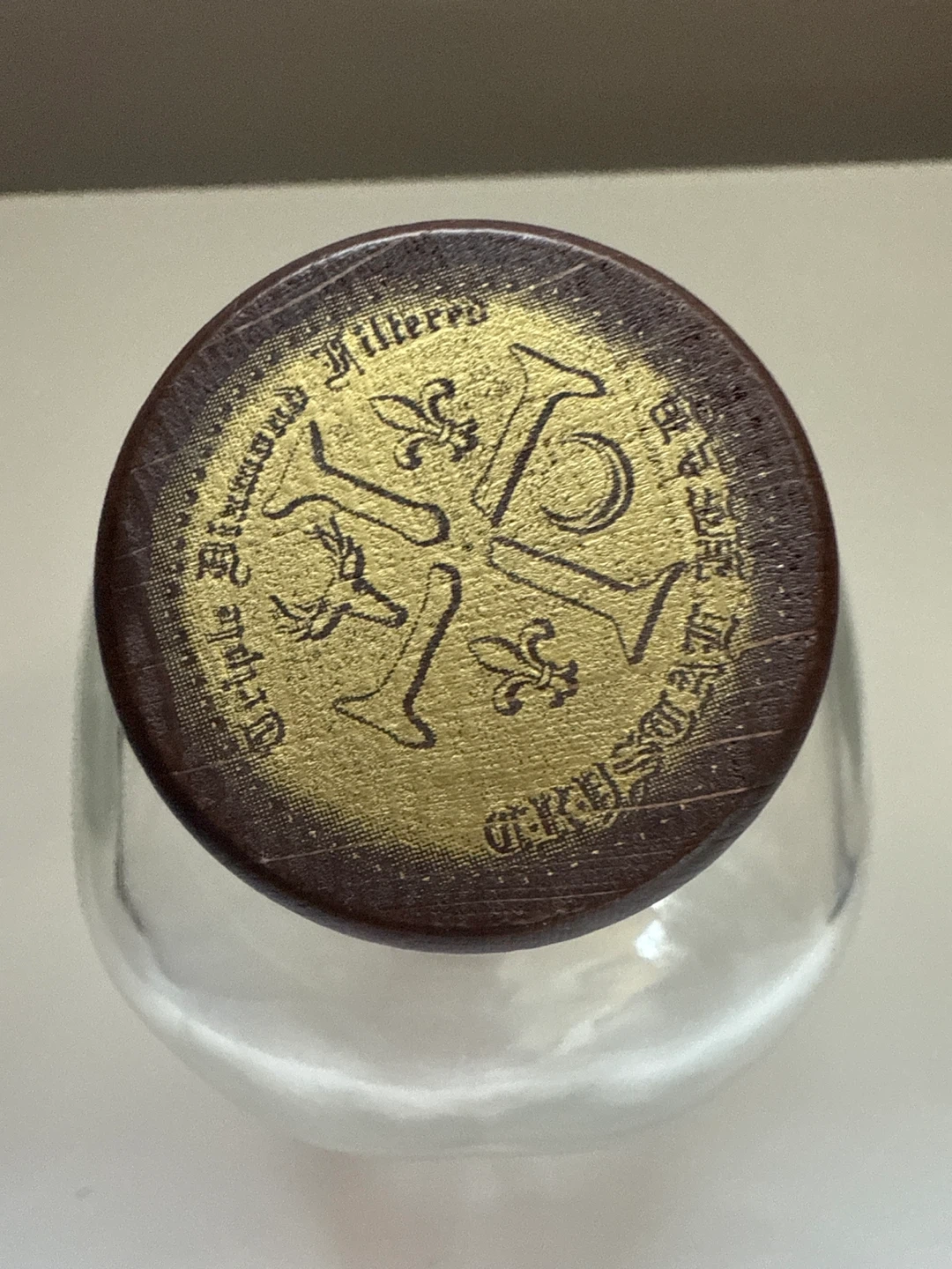 This is a Crystal Head Vodka bottle shaped like a skull. It's made of clear glass and comes with a wooden stopper. It's a 750 ml bottle and is a product of Canada.