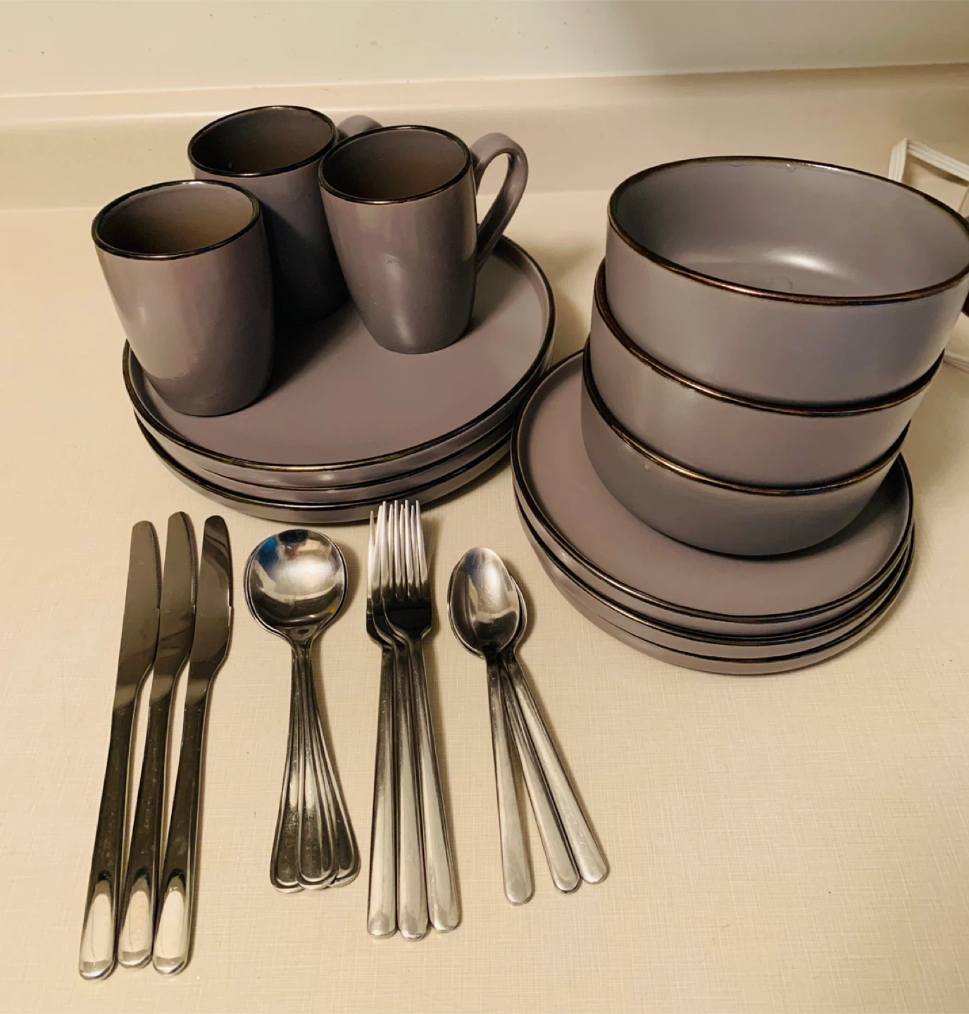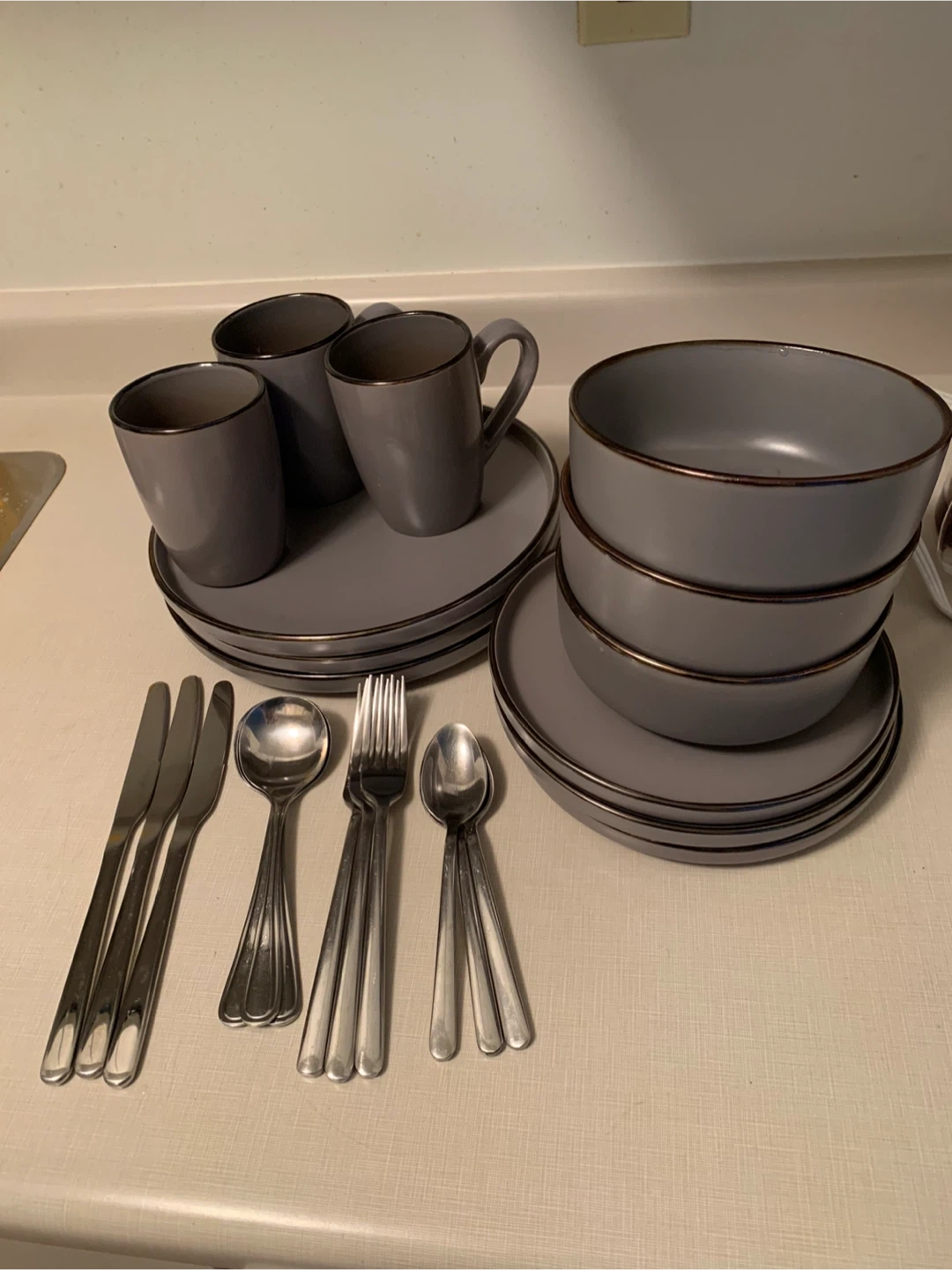Grey Dinnerware Set with Cutlery for 3 people