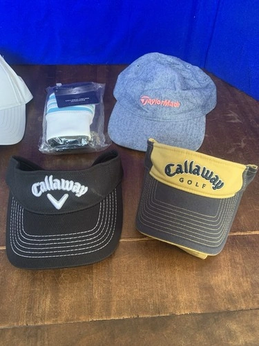 This is a great golf accessory bundle featuring premium brands Callaway and TaylorMade. Perfect for golfers looking to upgrade their gear, rotate different styles on the course, or add quality golf apparel at a great value. All hats and visors are adjustable sizes and are in excellent condition. The Callaway vintage headcover is brand new and still sealed in the original packaging.